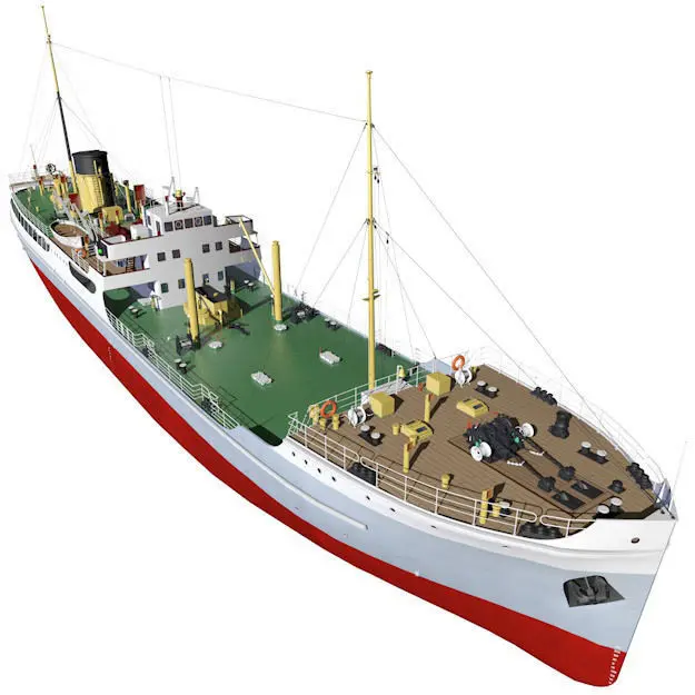 This is an accurate model of the SS Shieldhall, part of the UK's Historic Fleet and a preserved steamship that operates from Southampton in the United Kingdom. She spent her working life making regular trips from Glasgow, Scotland, down the River Clyde and around the Isle of Arran. These steamships had a tradition, dating back to the First World War, of taking organised parties of passengers on their trips during the summer.The model is also representative of a classic 1955 cargo vessel and would look equally at home in a convoy from the mid 1930's. Graceful lines, steam powered and a real classic of the seas.