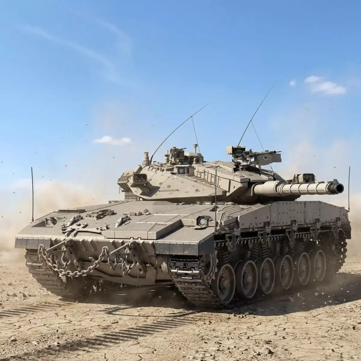 Merkava Siman 2 Bet Dor Dalet. Merkava Mk.2D is an upgraded version, fitted with the latest add-on modular composite armor. Add-on armor is similar to that of the Merkava Mk.4.Armament: American 105-mm M68 rifled gun, 2x7.62mm FN MAG machine guns, 12.7mm M2HB, 60-mm internal mortar Matador Mk.2. Equipped with 4th generation armor.