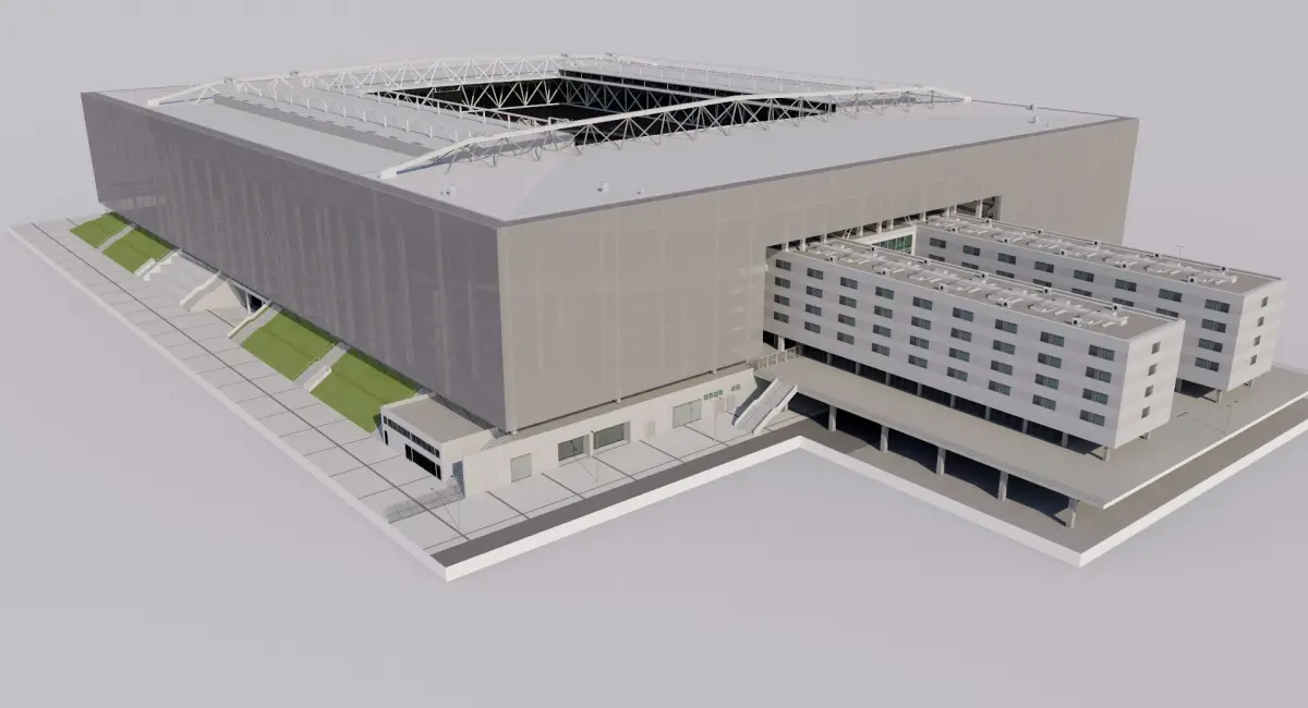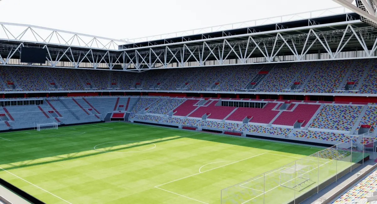 Starter model. Approximate dimensions. Bleachers and seats in 2D texture. Render setup not included.