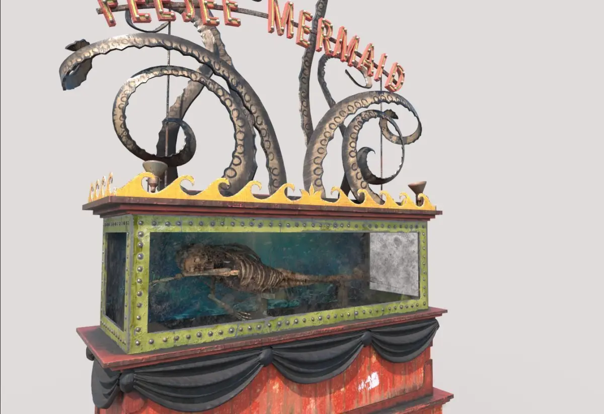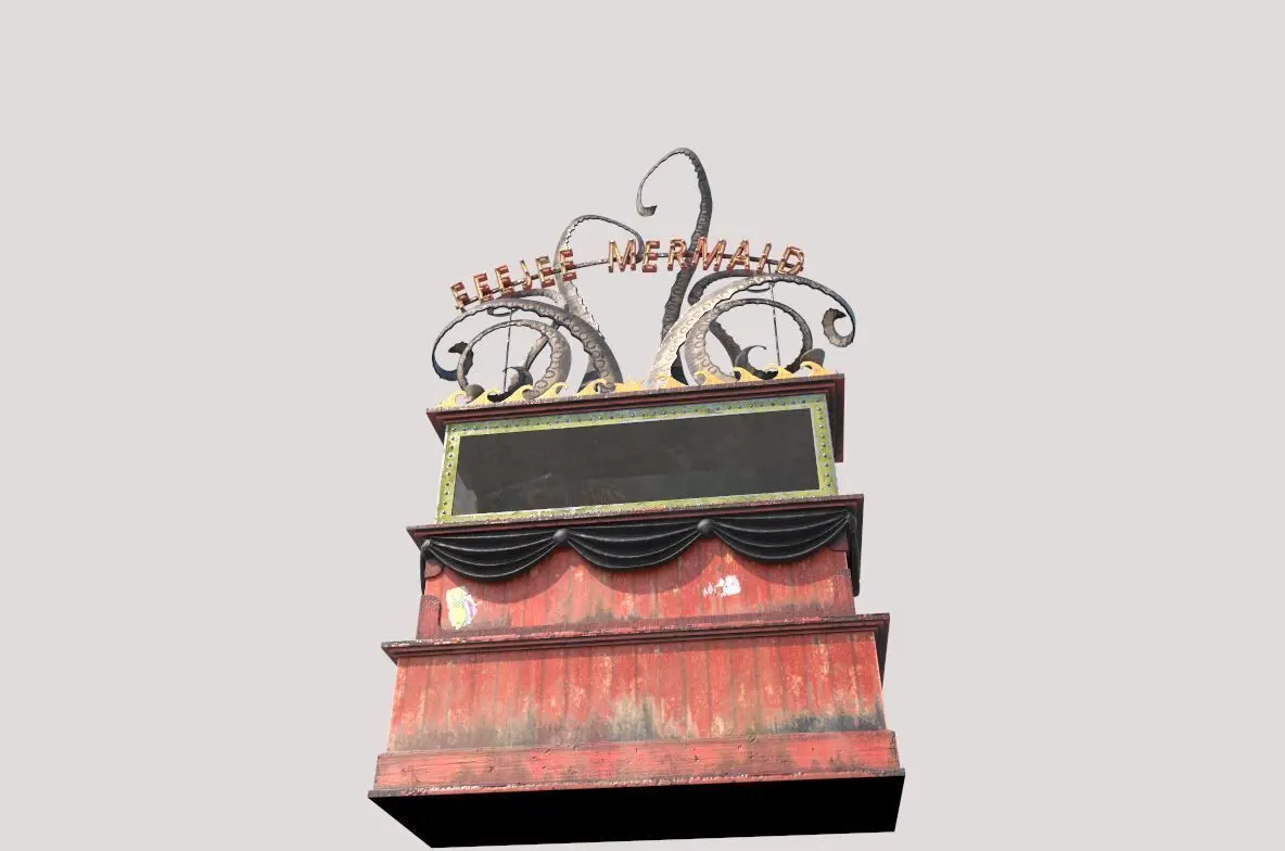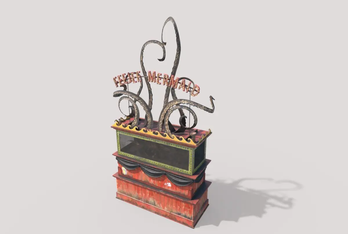 Model of mermaid exhibition stand . Model is very realistic. It has 6 PBR material.Maps are diffuse-specular-glossiness-height and normal. Also, PBR Metallic-Roughness ( Basecolor-Metallic-Normal-Roughness-Height and Opacity ) workflow has been added. Model's textures has two sizes; 4096x4096-2048x2048. All maps are PNG formats .