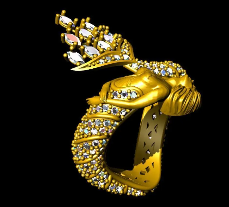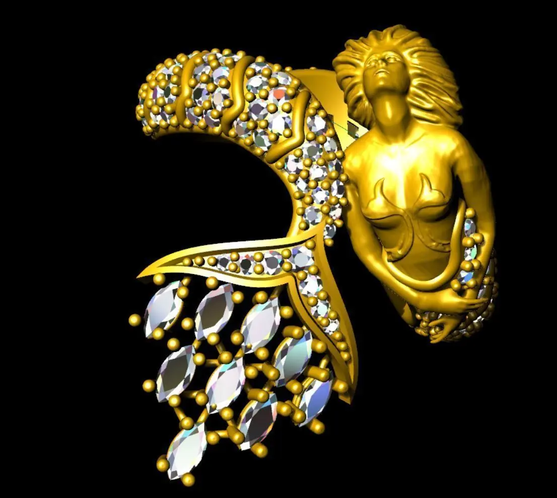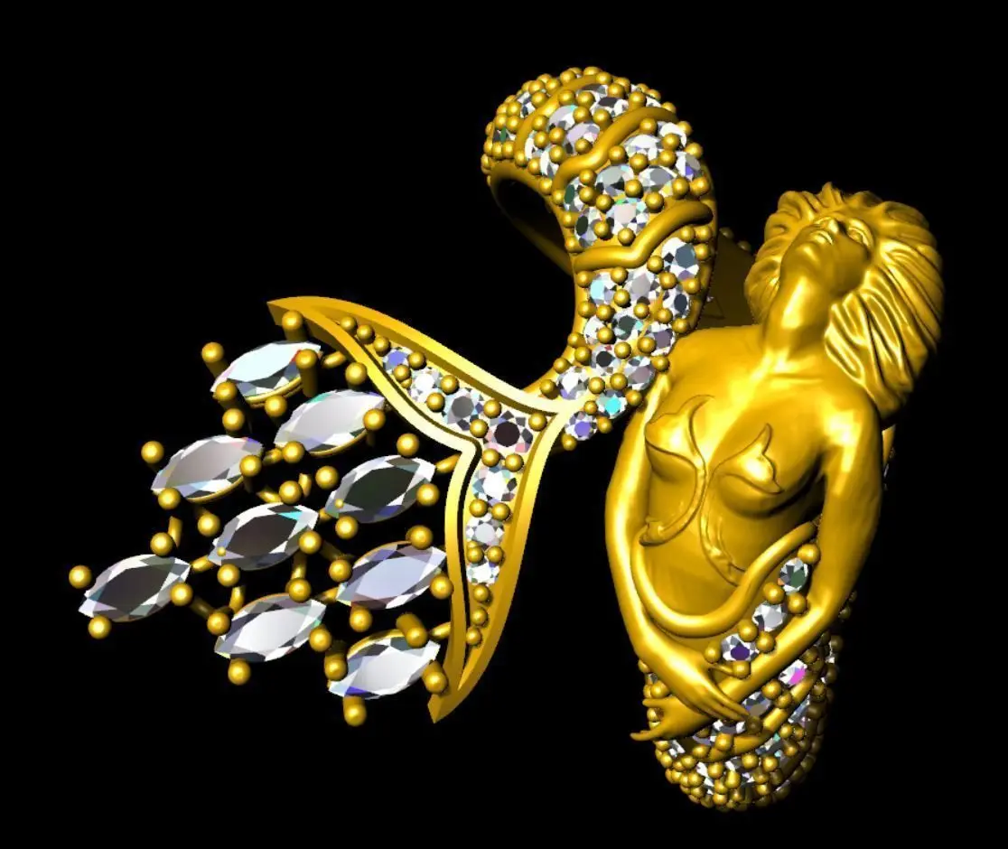 Mermaid Ring 3dm FileDiamond Size 1 mm to 1.2 mmmarquies = 6*4