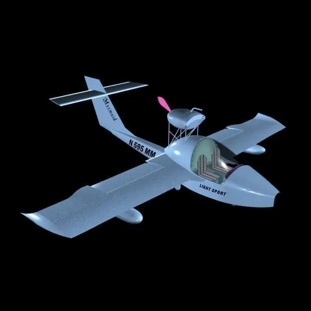 Model of "sport aircraft works inc."scale 1 : 10Realistic modeling2 Seater.Length 7.62 mtrsWing span 10.12 mtersLanding on water / thick grassSee more details in their web site