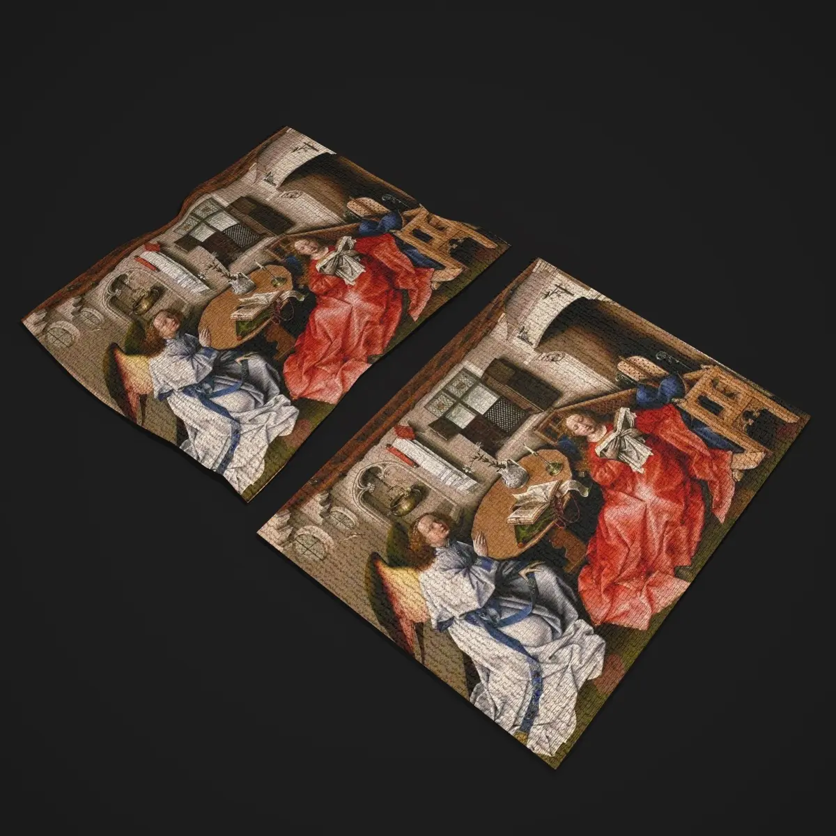 Merode Alter Piece Center Tapestry Artwork of Robert Campin 1435 3D Model. PBR Texture available in 4096 x 4096 Maps include : Basecolor, Normal, Roughness, and Metallic. All Preview renders were done Marmoset Toolbag 4 Scaled to real world scale. Includes 2 Models 1 Material. Customer Service Guaranteed. From the Creators at Get Dead Entertainment. Please like and Rate! Follow us on FaceBook and Instagram to keep updated on all our newest models. Notes about the artwork: Originally, The Mérode Altarpiece is an oil on oak panel triptych by painter painter Robert Campin.