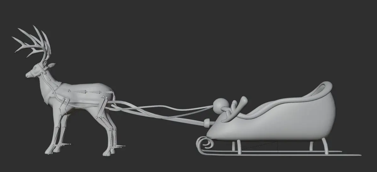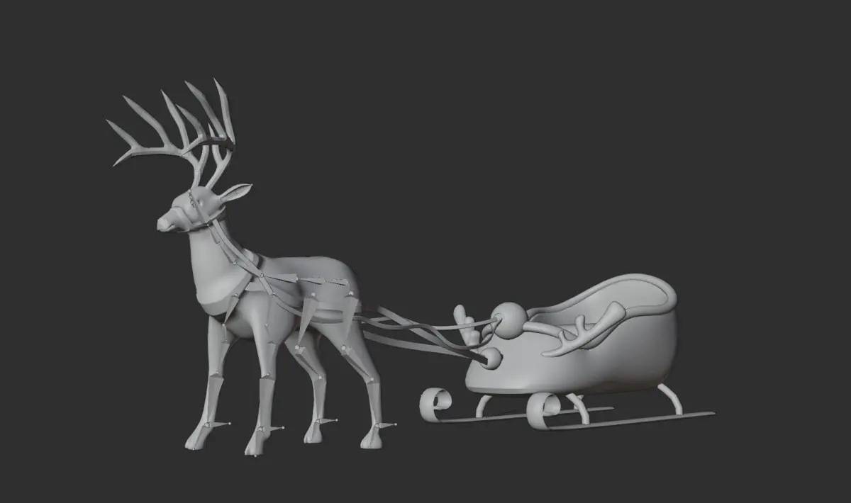 Merry christmas and happ new year reindeer with sleigh 3D model