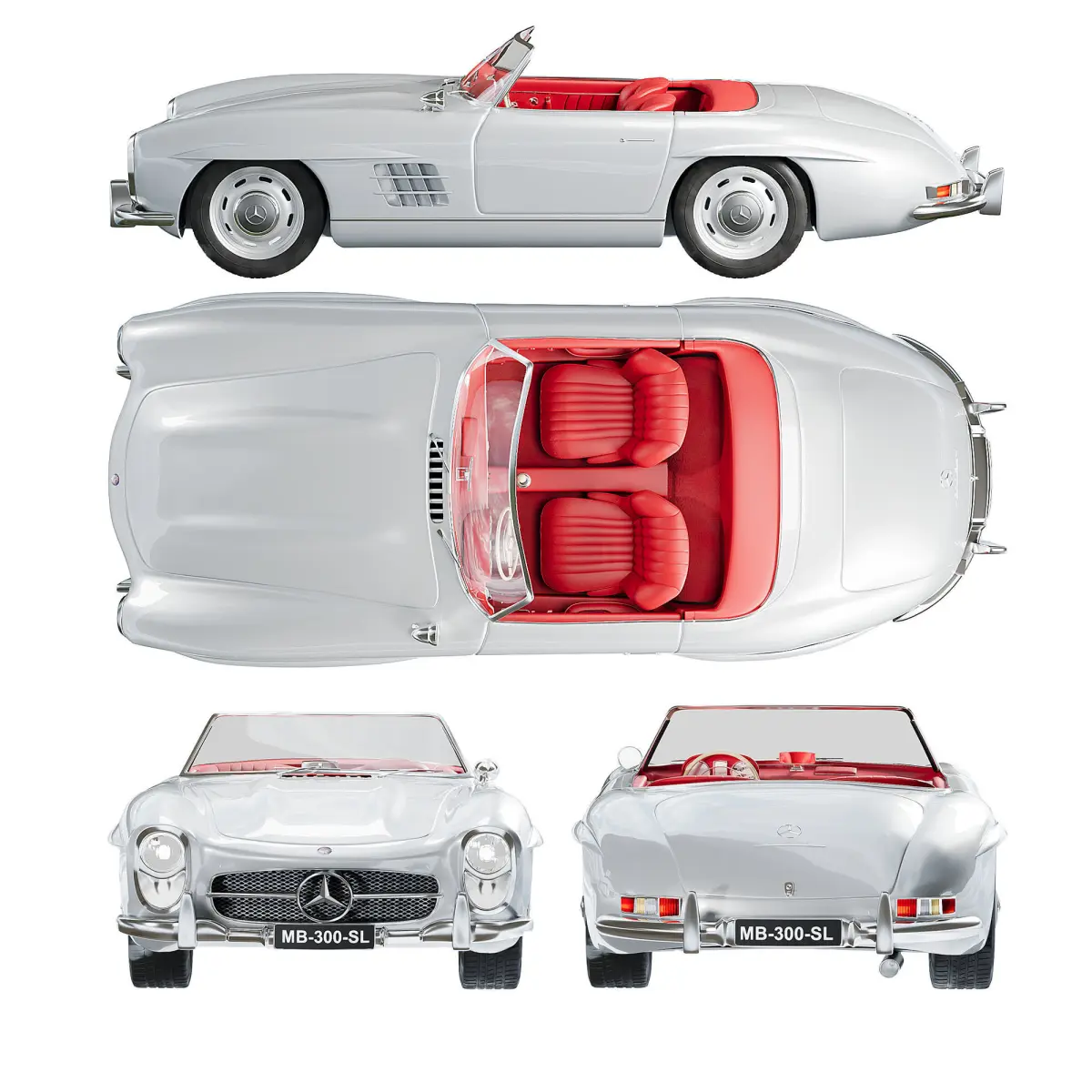 Name: Mersedes_Benz_300_SL_RoadsterVersion: 2016Preview: NoUnits: MillimetersDimension: 4554.6 x 1852.08 x 1139.2Polys: 404 226Verts: 410 431XForm: NoBox Trick: NoModel Parts: 1Render: CoronaFormats: 3Ds Max 2016, FBX