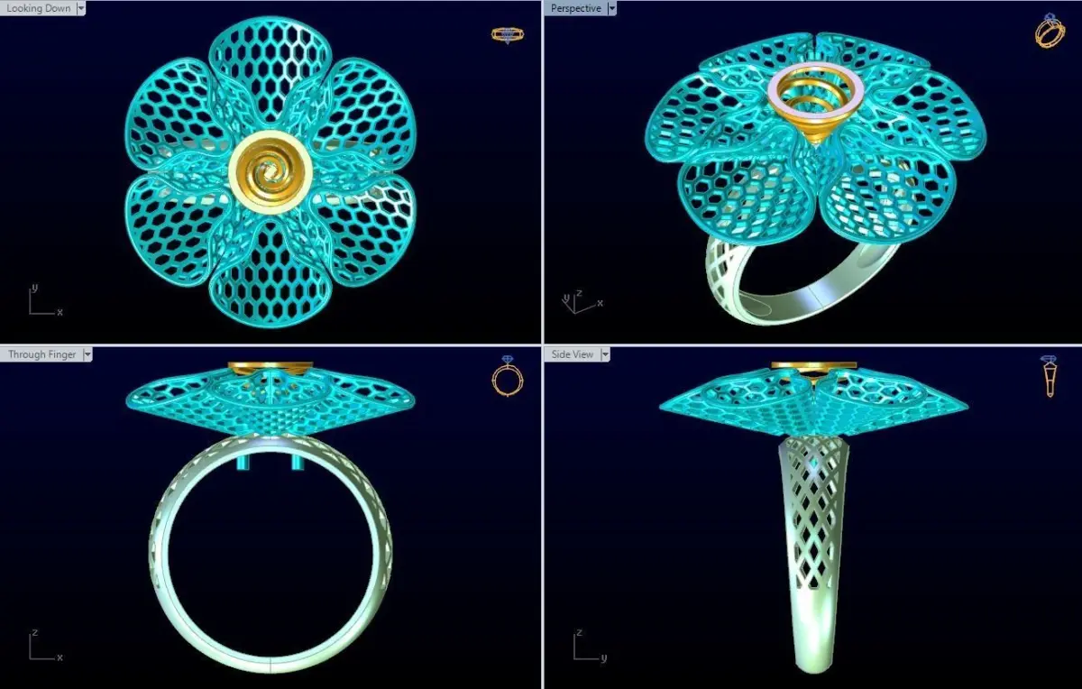 Mesh flower ring - Italian rings - Womens Rings - N6173.Rings are designed delicate, meticulously detailed by Rhino Matrix, Zbrush software.Suitable for processing jewelry silver, Platinum ... You can ask us questions if you have any questions. We will support and reply as soon as possible.