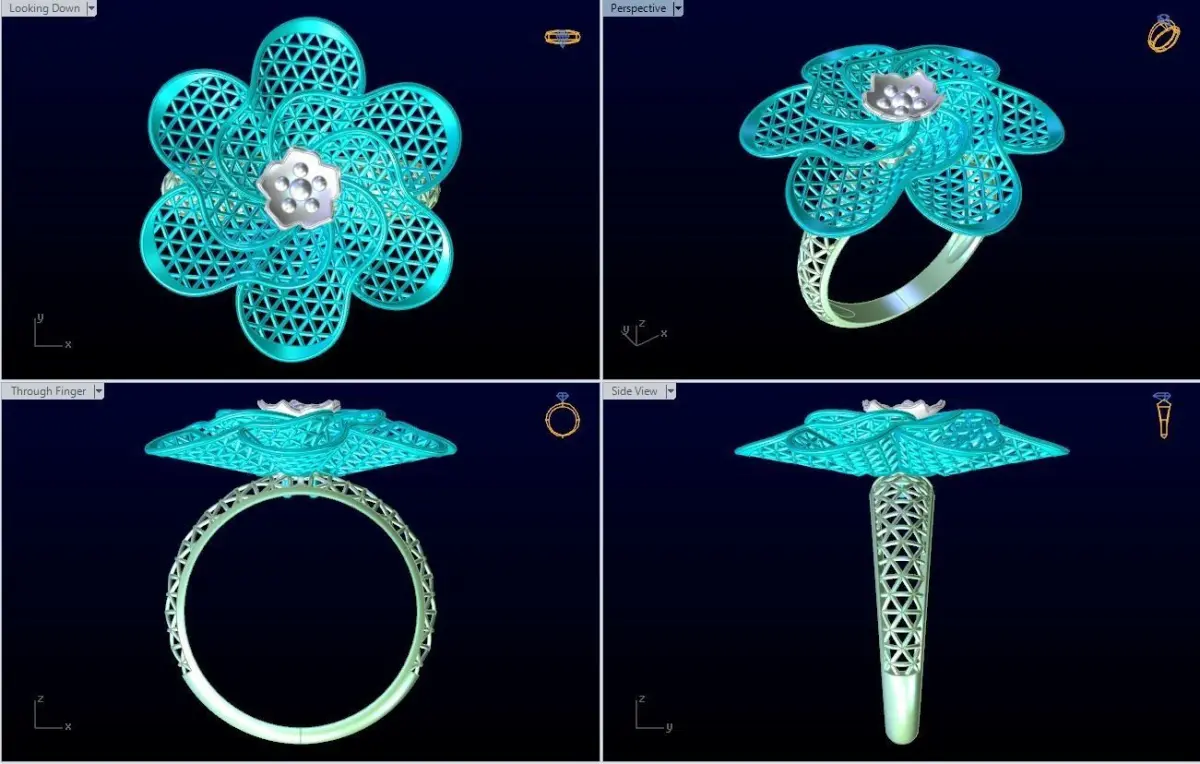 Mesh flower ring - Italian rings - Womens Rings - N6191.Rings are designed delicate, meticulously detailed by Rhino Matrix, Zbrush software.Suitable for processing jewelry silver, Platinum ... You can ask us questions if you have any questions. We will support and reply as soon as possible.
