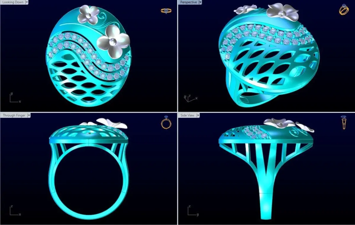 Mesh flower ring - Italian rings - Womens Rings - N6344.Rings are designed delicate, meticulously detailed by Rhino Matrix, Zbrush software.Suitable for processing jewelry silver, Platinum ... You can ask us questions if you have any questions. We will support and reply as soon as possible.