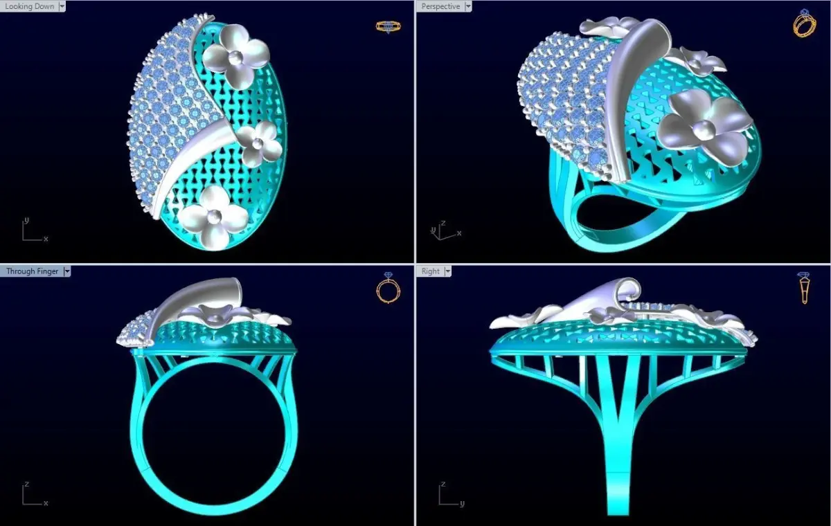 Mesh flower ring - Italian rings - Womens Rings - N6347.Rings are designed delicate, meticulously detailed by Rhino Matrix, Zbrush software.Suitable for processing jewelry silver, Platinum ... You can ask us questions if you have any questions. We will support and reply as soon as possible.