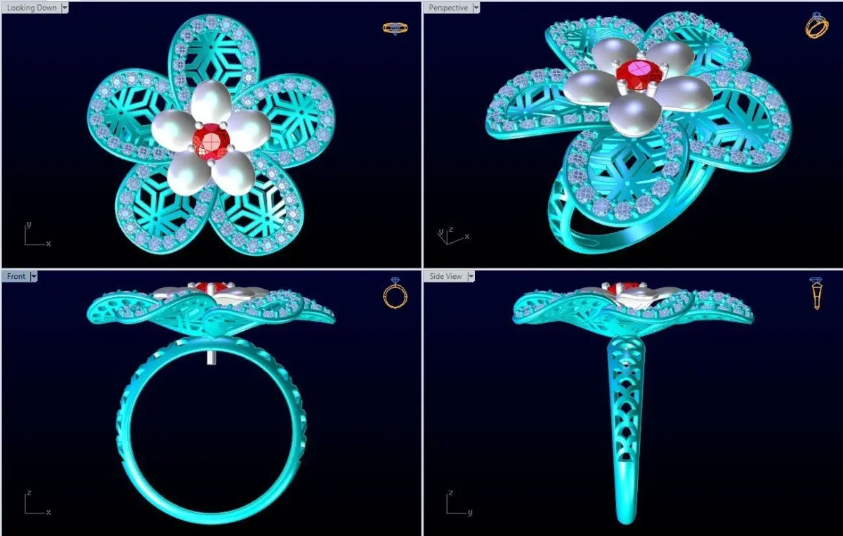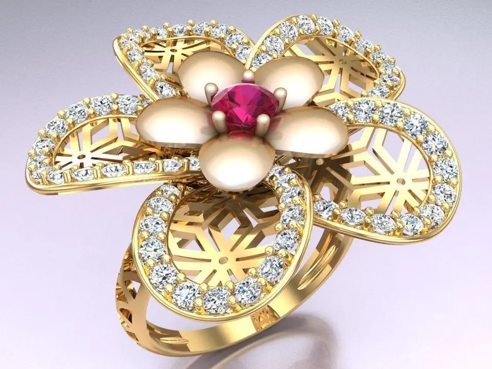 Mesh flower ring - Italian rings - Womens Rings - N6356.Rings are designed delicate, meticulously detailed by Rhino Matrix, Zbrush software.Suitable for processing jewelry silver, Platinum ... You can ask us questions if you have any questions. We will support and reply as soon as possible.