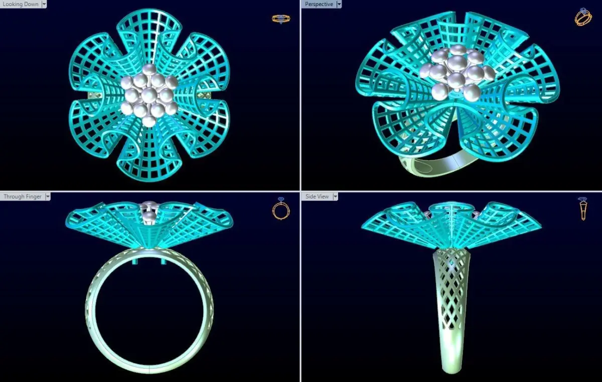 Mesh flower ring - Italian rings - Womens Rings - N6434.Rings are designed delicate, meticulously detailed by Rhino Matrix, Zbrush software.Suitable for processing jewelry silver, Platinum ... You can ask us questions if you have any questions. We will support and reply as soon as possible.