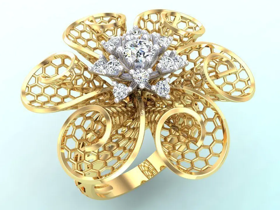 Mesh flower ring - Italian rings - Womens Rings - N6463.Rings are designed delicate, meticulously detailed by Rhino Matrix, Zbrush software.Suitable for processing jewelry silver, Platinum ... You can ask us questions if you have any questions. We will support and reply as soon as possible.
