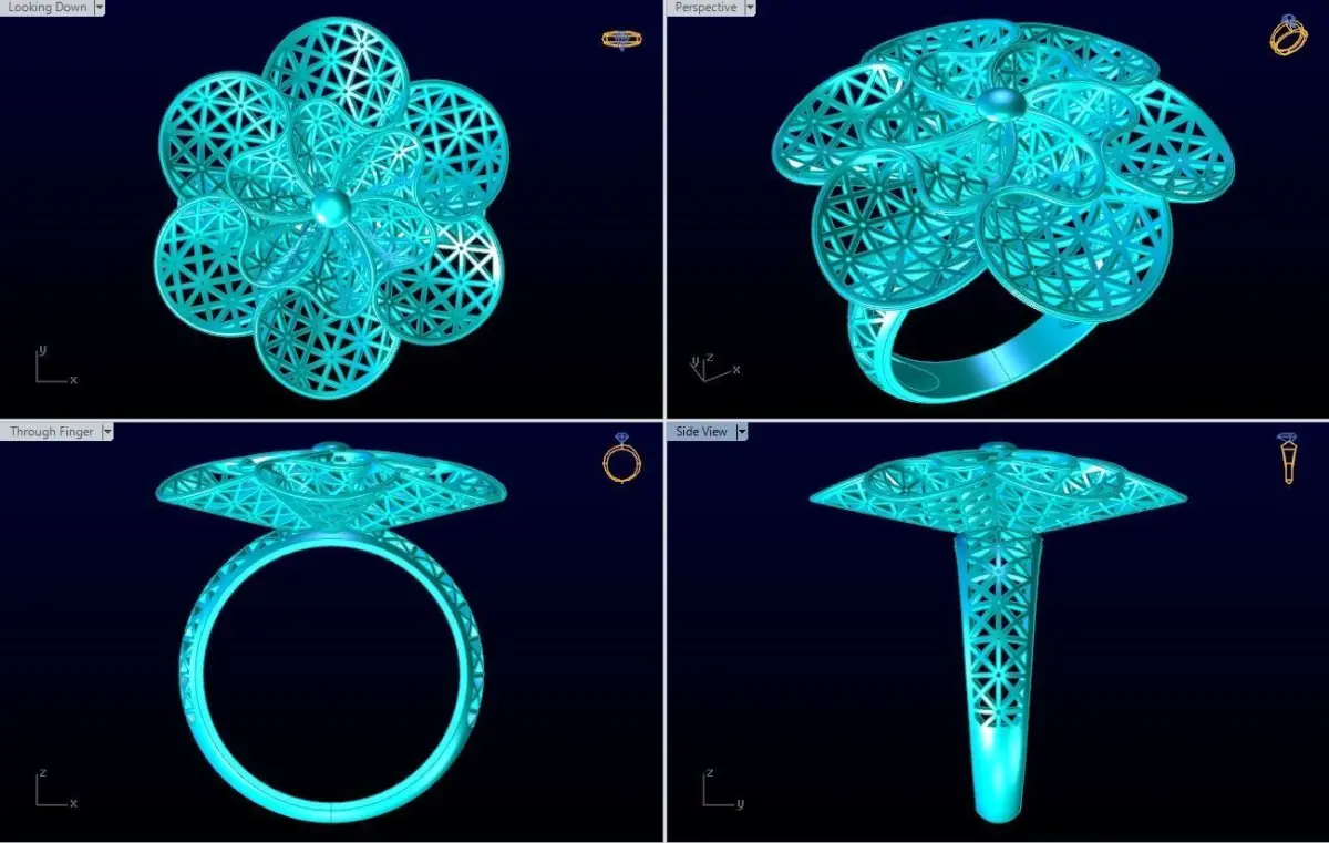 Mesh flower ring - Italian rings - Womens Rings - N6529.Rings are designed delicate, meticulously detailed by Rhino Matrix, Zbrush software.Suitable for processing jewelry silver, Platinum ... You can ask us questions if you have any questions. We will support and reply as soon as possible.