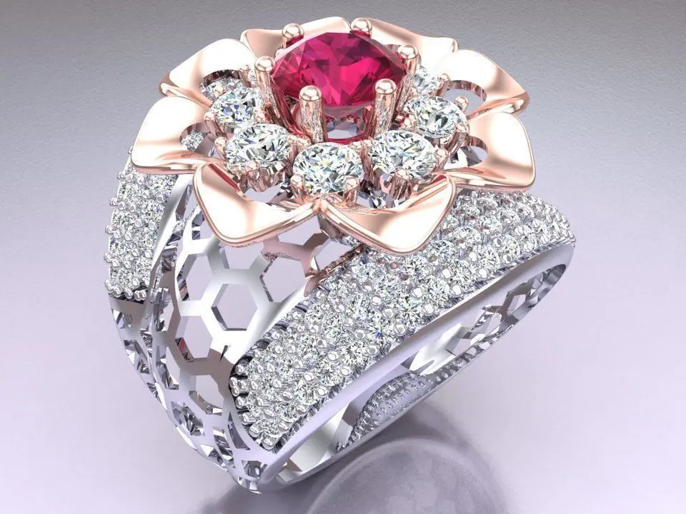 Mesh flower ring - Italian rings - Womens Rings - N6788.Rings are designed delicate, meticulously detailed by Rhino Matrix, Zbrush software.Suitable for processing jewelry silver, Platinum ... You can ask us questions if you have any questions. We will support and reply as soon as possible.
