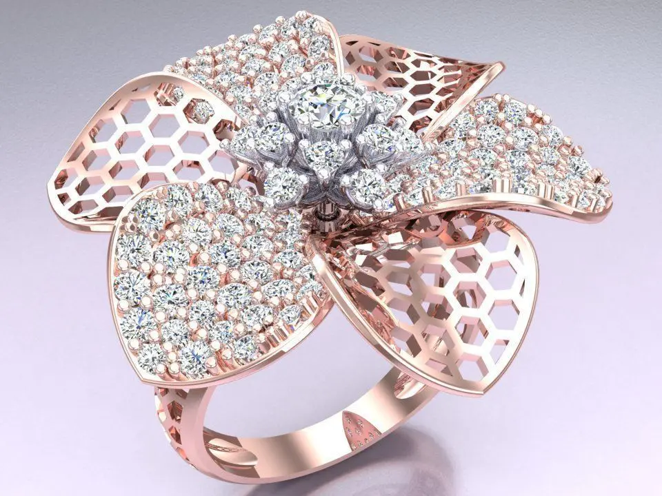 Mesh flower ring - Italian rings - Womens Rings - N6827.Rings are designed delicate, meticulously detailed by Rhino Matrix, Zbrush software.Suitable for processing jewelry silver, Platinum ... You can ask us questions if you have any questions. We will support and reply as soon as possible.