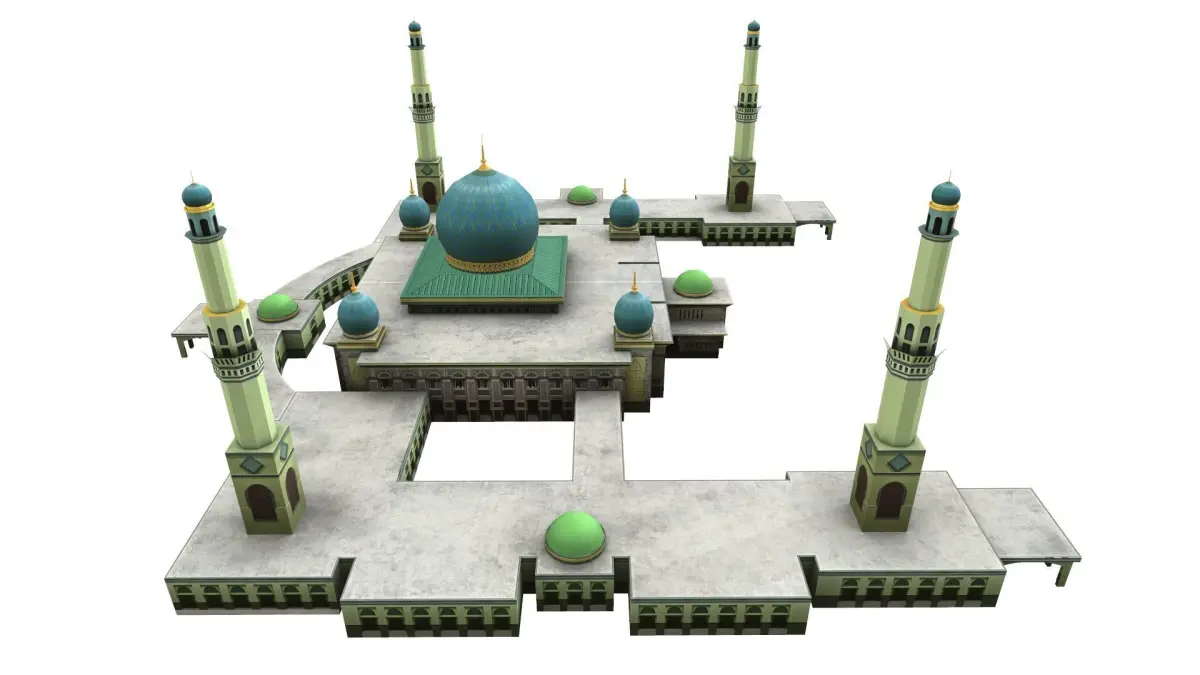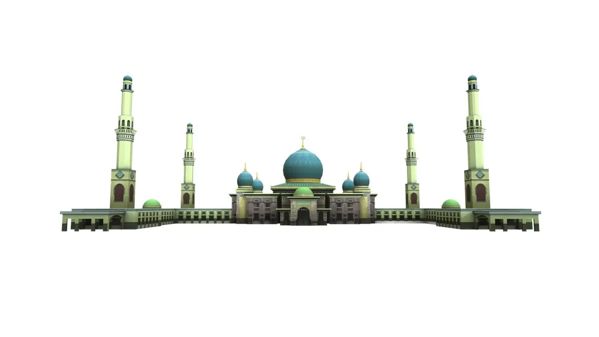 Low Poly Model suitable for simulators and games.An-Nur Great Mosque is a mosque located in Pekanbaru, Riau, Indonesia. Construction began in 1963 and was completed in 1968. The mosque can accommodate about 4,500 worshipers. It is one of the grandest mosques in Indonesia. Seen from the side of the building, the mosque has influences from various architectural styles: Malay, Turkish, Arabic and Indian.
