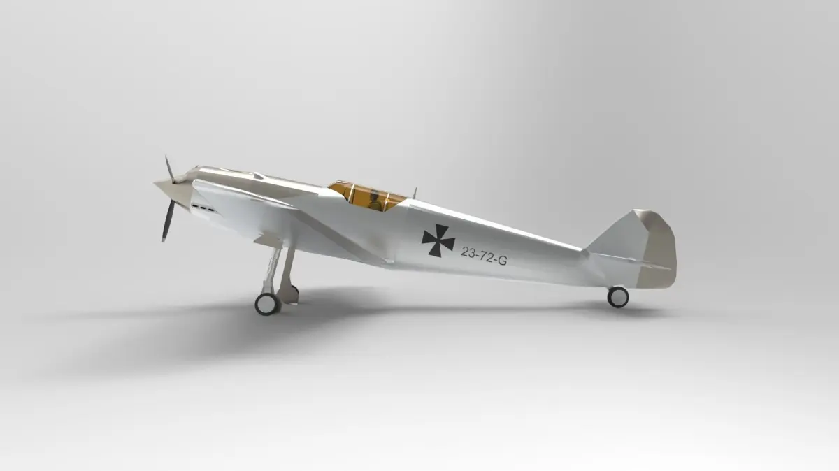 The Messerschmitt Bf 109 is a German World War II fighter aircraft that was, along with the Focke-Wulf Fw 190, the backbone of the Luftwaffe's fighter force.[3] The Bf 109 first saw operational service in 1937 during the Spanish Civil War and was still in service at the dawn of the jet age at the end of World War II in 1945.[3] It was one of the most advanced fighters when it first appeared, with an all-metal monocoque construction, a closed canopy, and retractable landing gear. It was powered by a liquid-cooled, inverted-V12 aero engine.[4] It was called the Me 109 by Allied aircrew and some German aces, even though this was not the official German designation.[5]