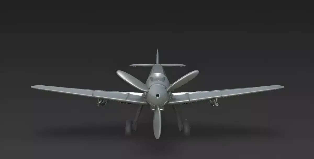 High-Fidelity Engine Cowling and Wing Armament DetailA primary feature of this model is the integrated inverted-V12 engine assembly and wing-mounted cannons. Every individual exhaust port, the recessed machine gun troughs on the nose, and the specialized three-blade propeller with its hollow hub for a central cannon are modeled with significant surface depth, providing a clear visual indicator of advanced mid-century aviation engineering and adding incredible tactile detail for close-up inspection.