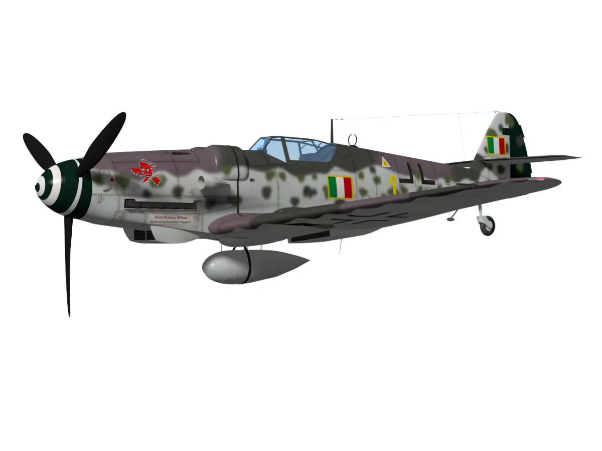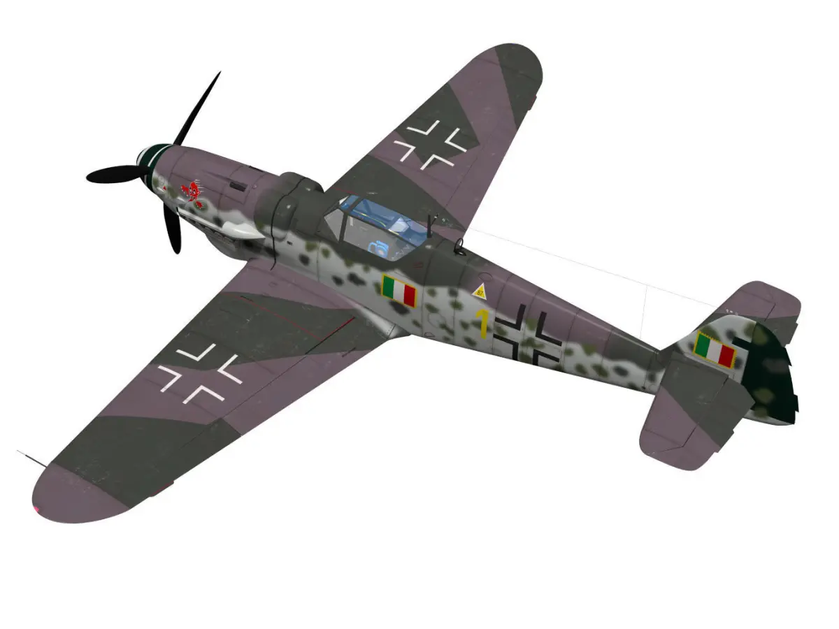 It is a representative German fighter aircraft during WW2.The model is the G-14 type.Markings are from the regia aeronautica.The model's Landing gear is divided into flight and landing state parts.