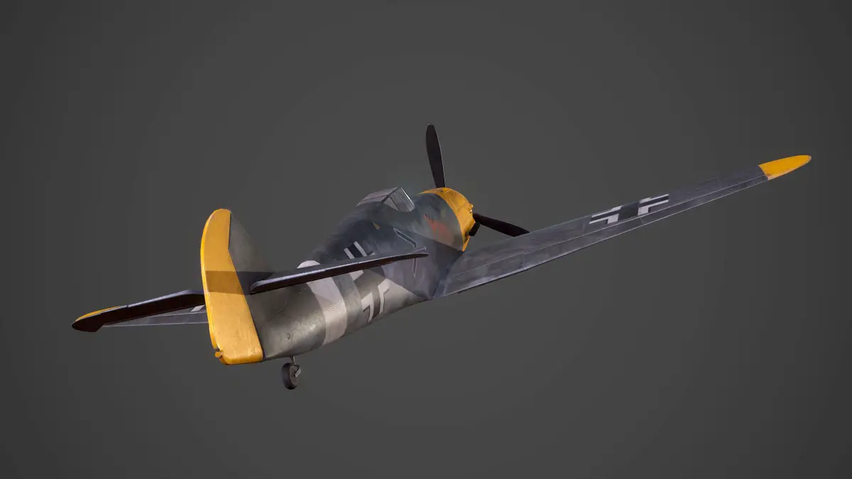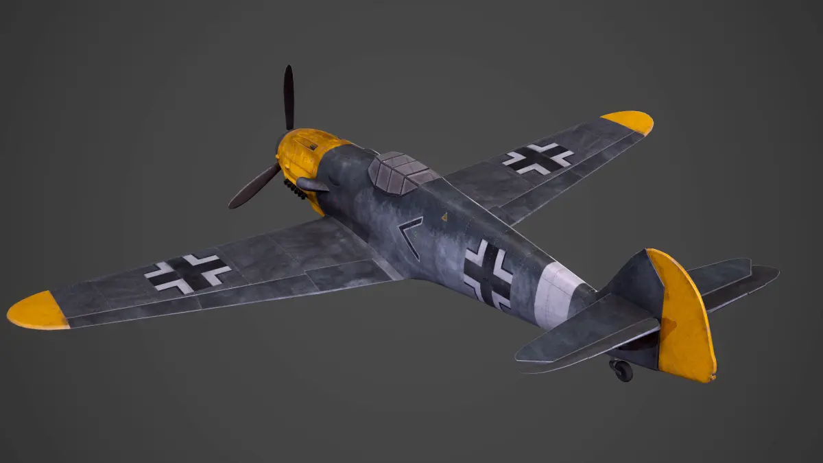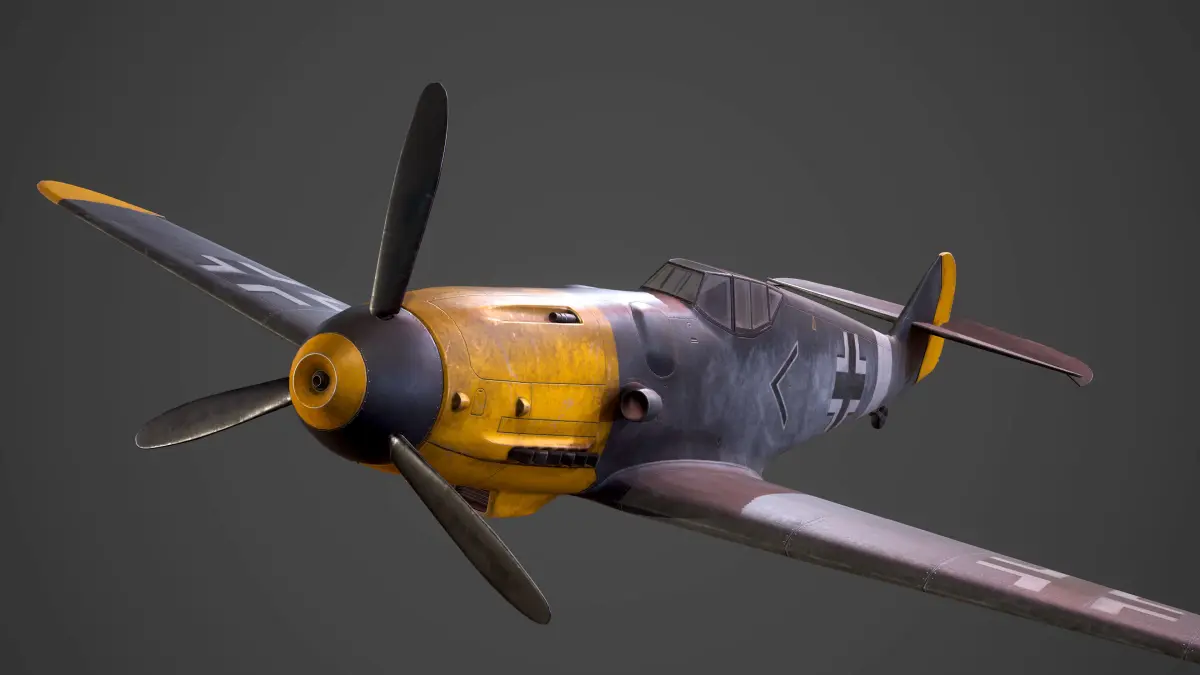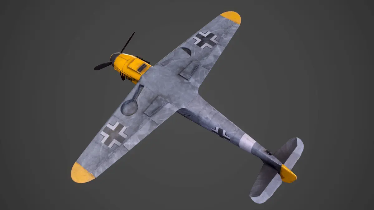 Low Poly model with PBR textures of the fighter aircraft said to have been the backbone of the German Luftwaffe during World War 2: the Messerschmitt BF109.