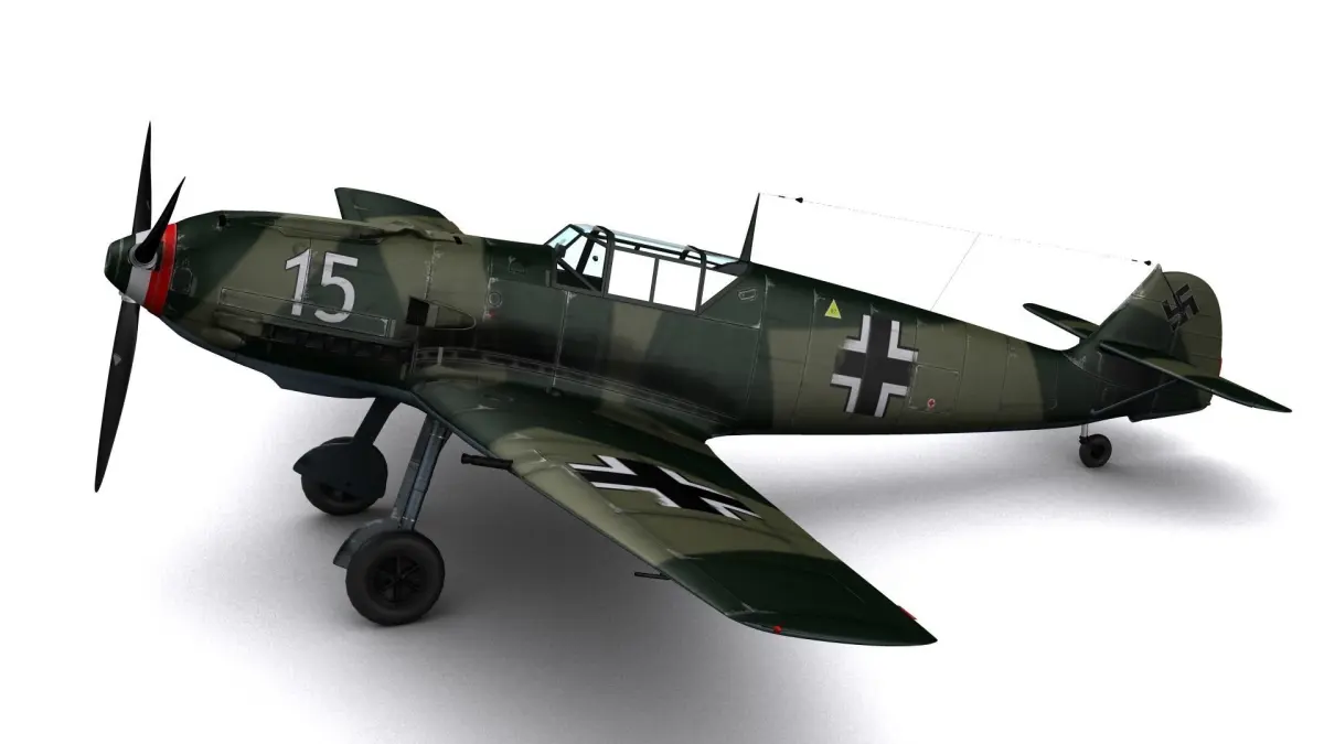 The Bf109 underwent numerous improvements throughout its carrier, and mass production of the E variant started late in 1939. Within one year, about 2,000 ?E? aircraft were rolled out. Its excellent performance greatly contributed in the active service of German pilots at the Western Front and during the Battle of Britain. The E-3 version used and improved Daimler-Benz DB601Aa engine capable of 1,100 h.p. output. This engine had provision for mounting a 20mm MG FF cannon on the crankcase and firing through propeller hub. The Messerschmitt Bf109E was one of the best fighters of the early WW2 period, on a par with the British Spitfire.