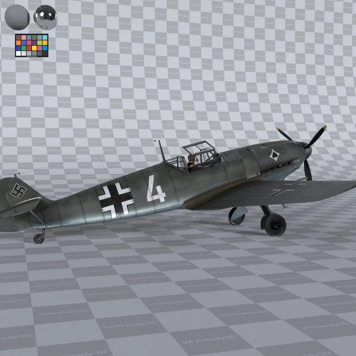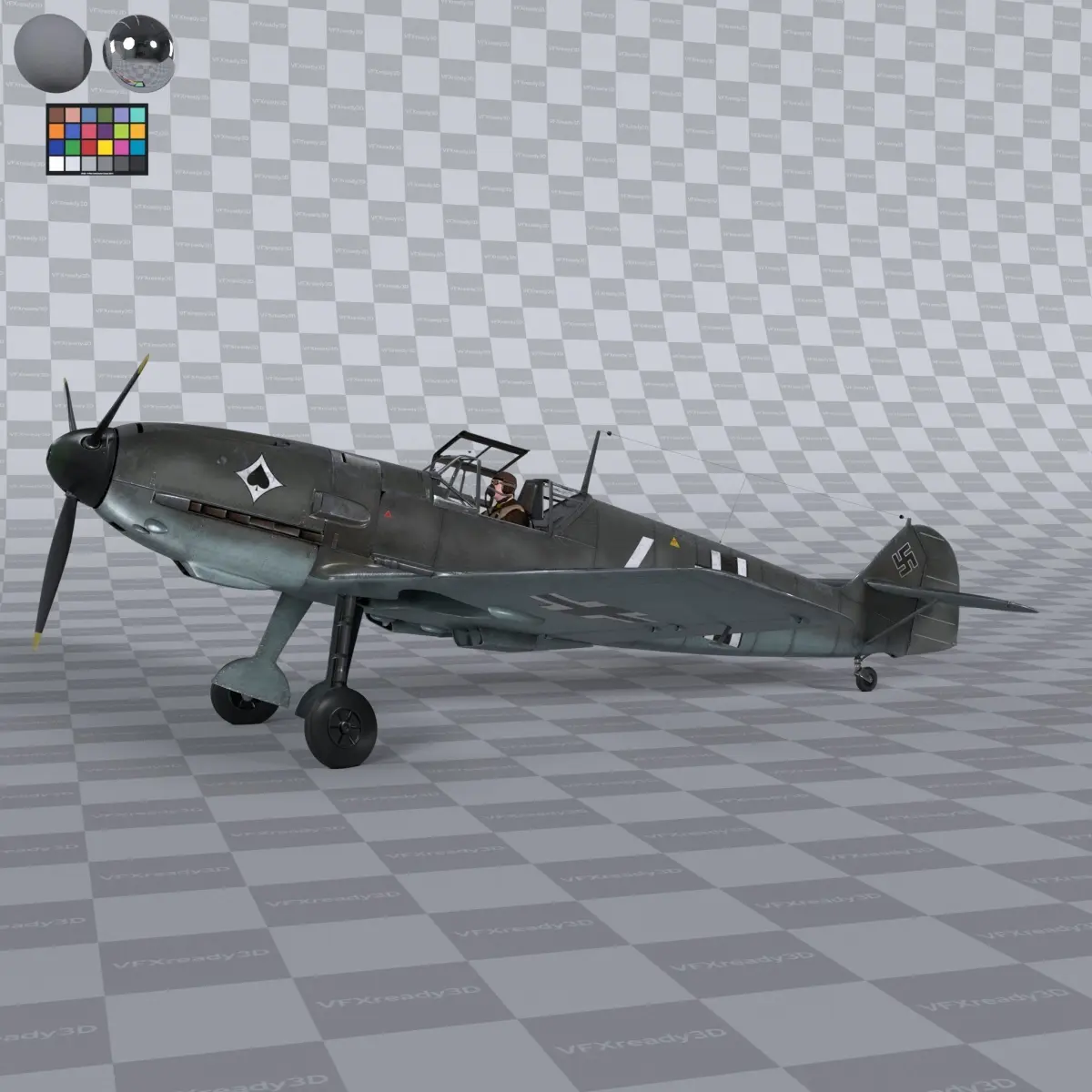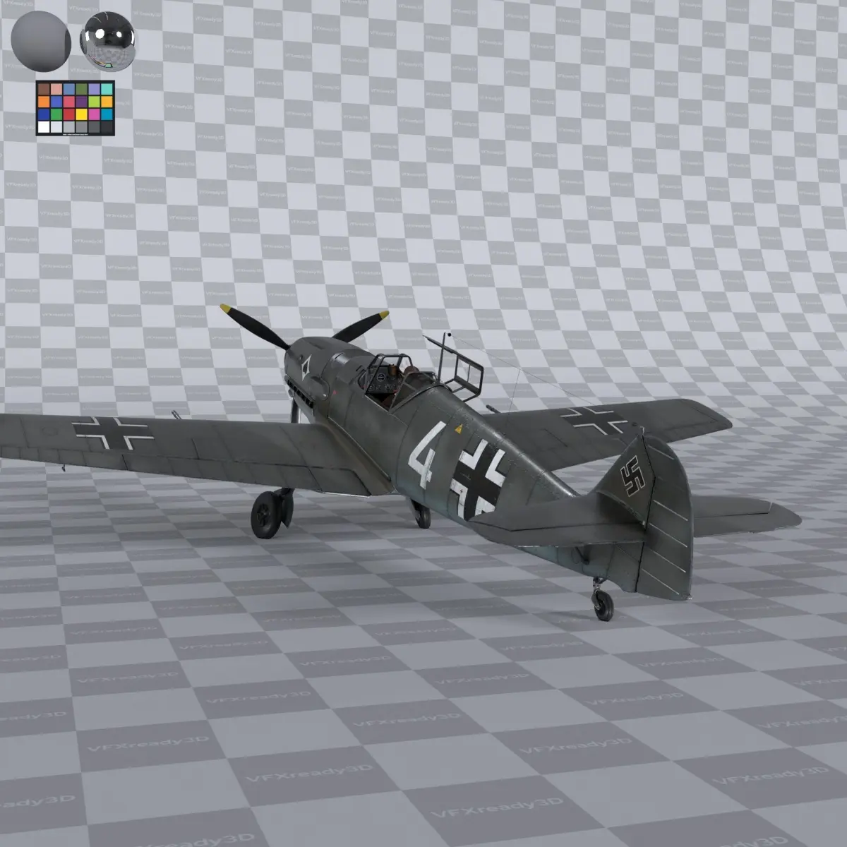 Home Catalog Messerschmitt BF109 German Fighter Airplane Grey V3 3D model
