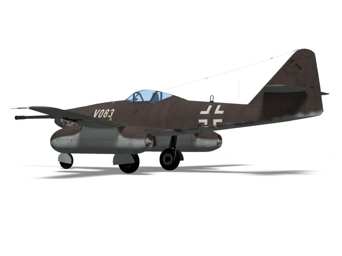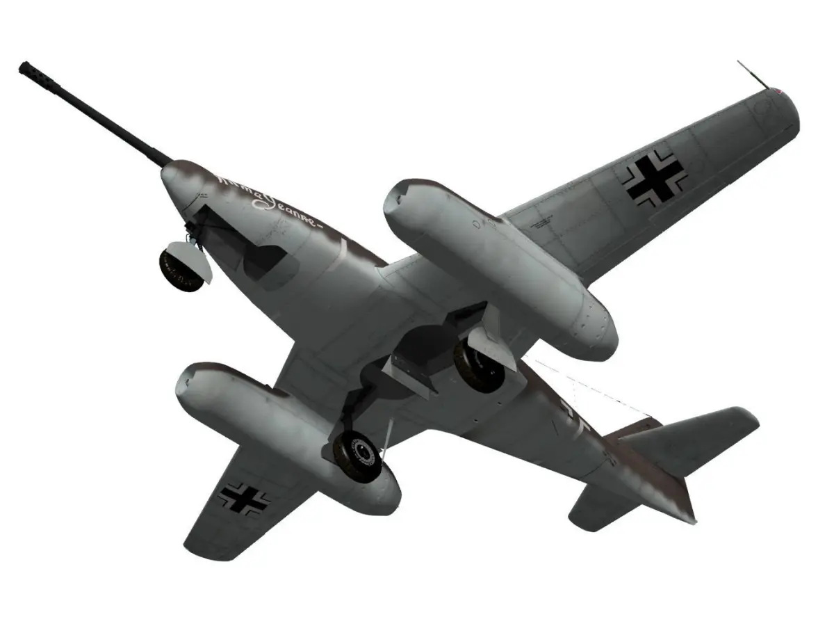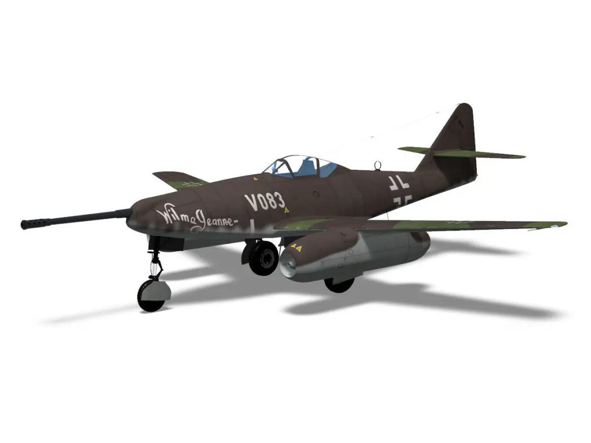 The Messerschmitt Me 262 was a jet fighter operated by the Luftwaffe at the end of WW2.The A1aU4 is a prototype equipped with a MK214A 50mm machine gun in the nose.The model's landing gear is divided into two parts: flight state and landing state.