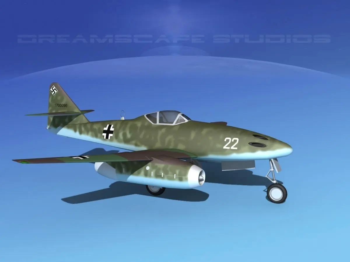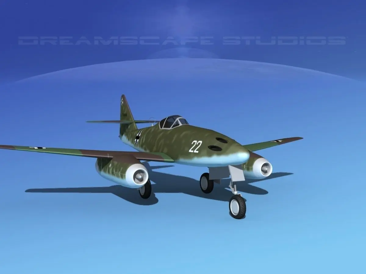 Messerschmitt ME-262A1 Swallow V10 This model is fully textured and comes with many animateable features and lots of detail. The cockpit is fairly well modeled and detailed. The canopy opens. Landing gear can be extended or retracted into the modeled landing gear bays. Flaps, elevators and rudder can be actuated in animation. The turbines front blades are visible and animateable. All materials and textures are included as shown. This model is available here in 9 formats for your immediate downloading.