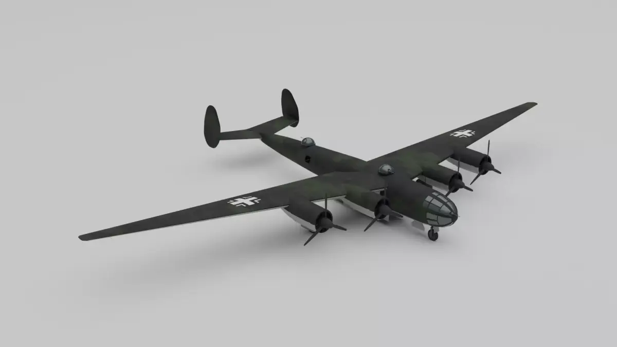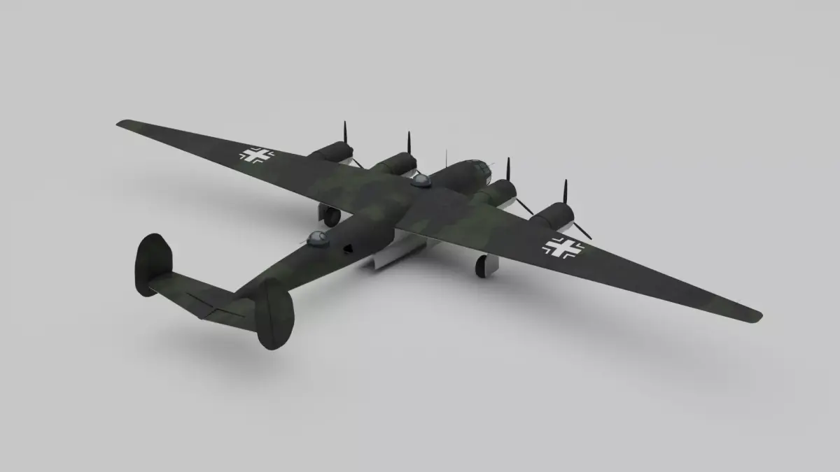 Completed in just five days, this model represents the Messerschmitt Me 264, a heavy bomber developed by Germany. Historically known as the Amerika Bomber, it was designed for long-range strategic bombing runs against the United States. Ultimately, the project was canceled after only two prototypes were built.