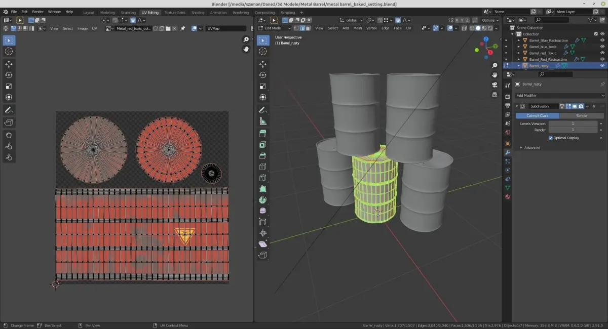 Textures BakedUVW mappingSeparate texture for each variant of barrel