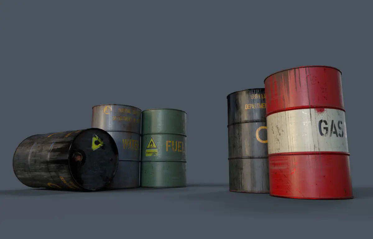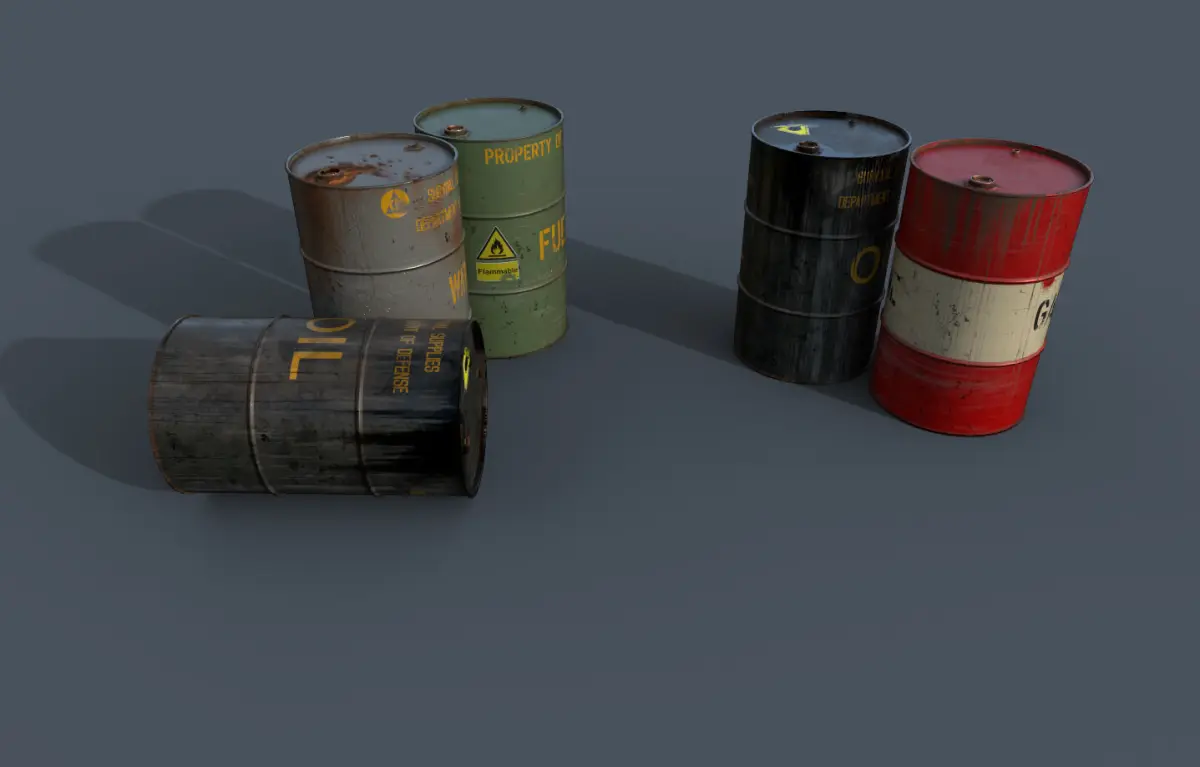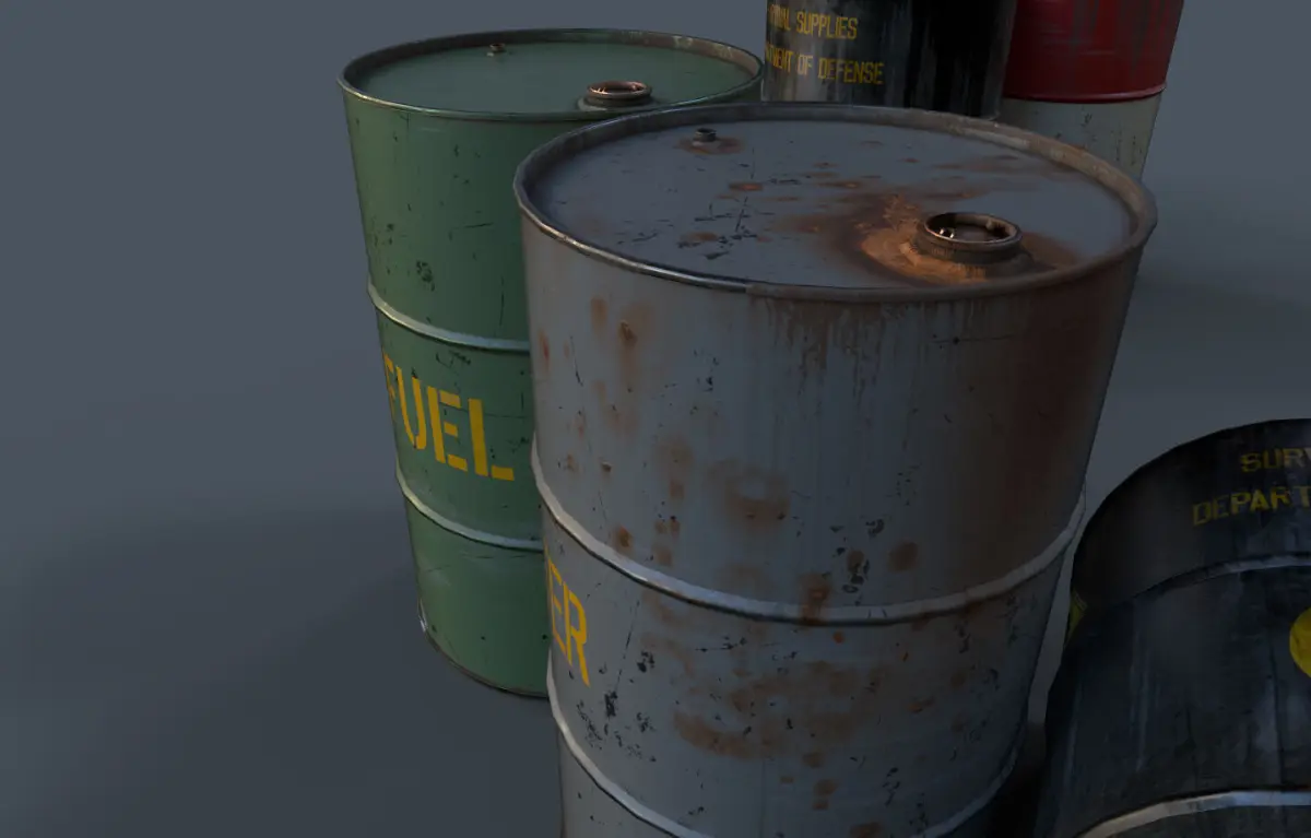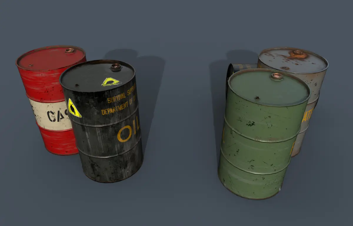 Sheet metal barrels are generally the most widely used packaging for the transportation and storage of medium to small quantities of liquids in the chemical, petrochemical, pharmaceutical, food and agricultural industries.1 Texture 4K Low poly/ PBR texture 2D View/Corona/Arnold/PBR Metalic Roughness/PBR Specular Glossiness/Unity Universal Render Pipeline (metalic standart)/Unity Universal Render Pipeline (Specular)/Unreal Engine 4 /Vray Next (Metalic Roughness)/Vray Next (Specular Glossiness)/ Blender.