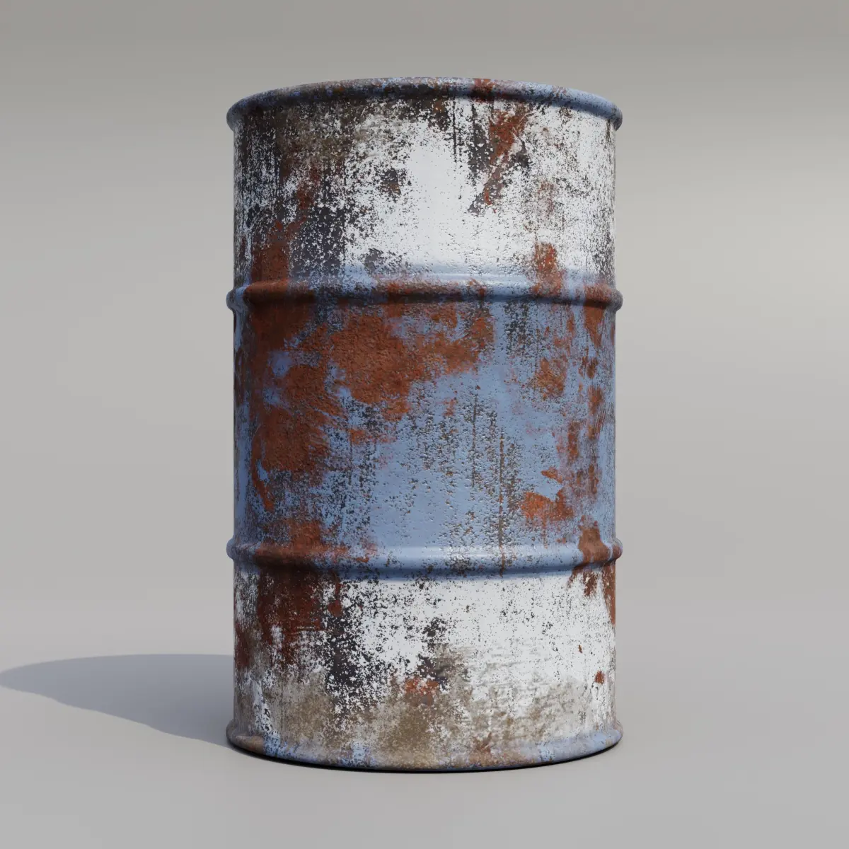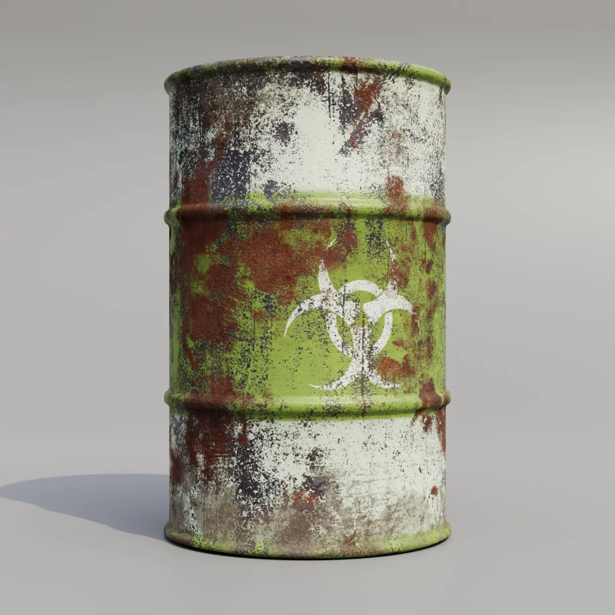 Set of metal barrels with different emblems and different colors. Collection of models of containers for storing hazardous substances, radiation, chemicals, poison, fuel, waste. Bundle game ready.