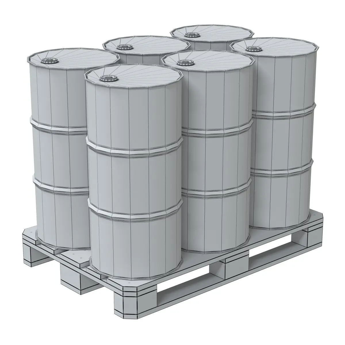 Metal barrels on a wooden pallet=------------------------------------=On the render, a turbo smooth with two iterations.=------------------------------------=Polygons: 12,166Vertices: 12,516=------------------------------=3ds Max 2014 , Obj , Corona , Vray=------------------------------=Width : 800 mmDepth : 1200 mmHeight : 950 mm