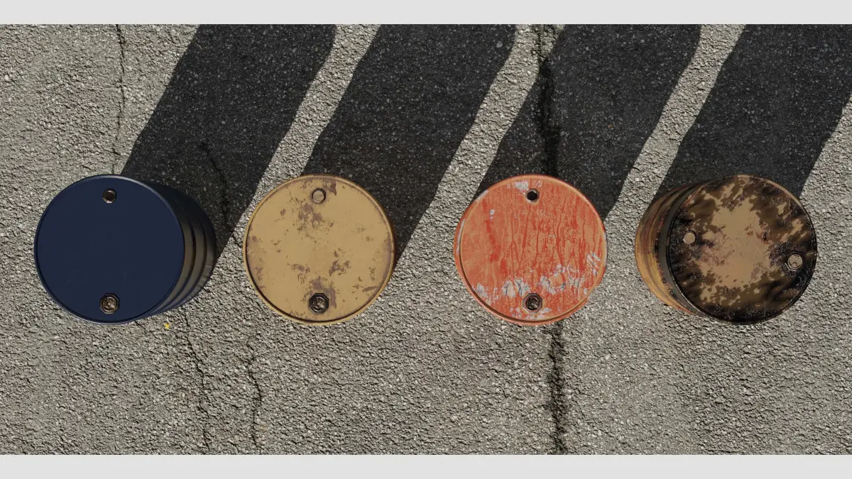 Metal Barrels with 4K Textures made in Blender 3.2 , works with 2.8+Formats: FBX, OBJ, BLEND