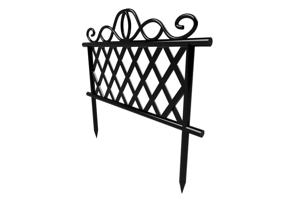 It is a decorative metal barrier for garden. Garden edging border. Ideal for garden project. It can be used to separate different paths or flower beds in the garden. Decorative pattern on the top of the model. Two pickets. Dimensions 60 cm x 2 cm x 53.5 cm. This model has been created with Fusion 360. Clean geometry. Real rendering with metal material. This model is divided in different components. Model resolutions are optimized. It is possible to change the material. To create a large border, the model can be duplicated at the convenience they can be linked together.