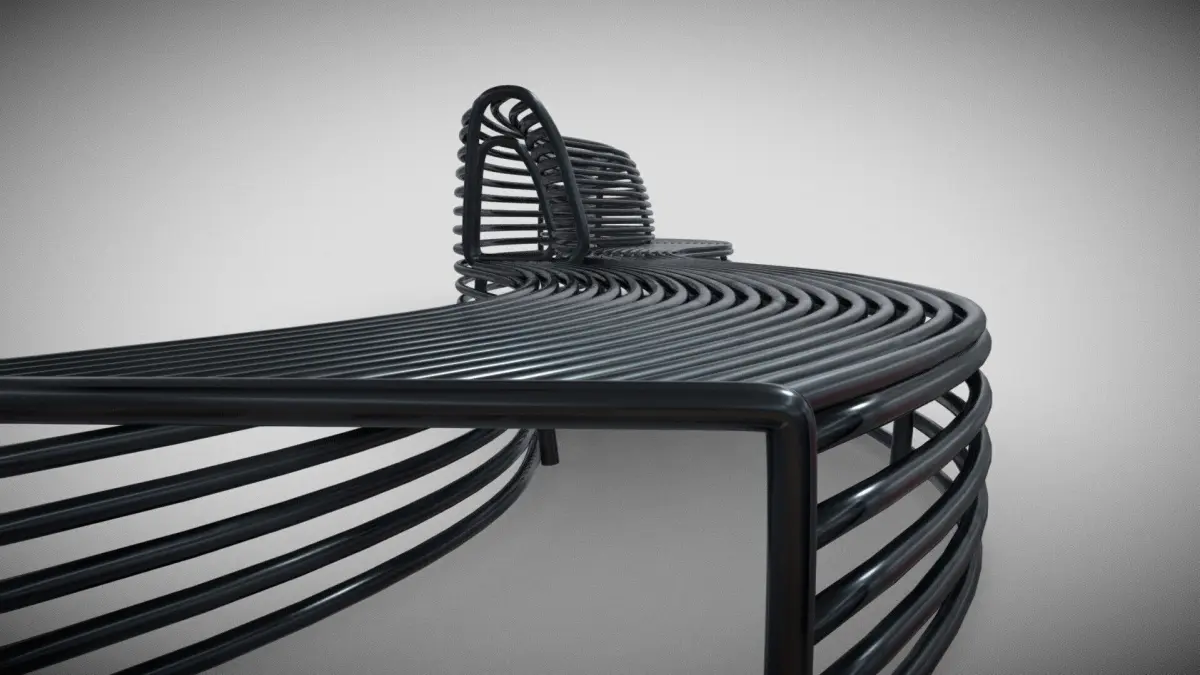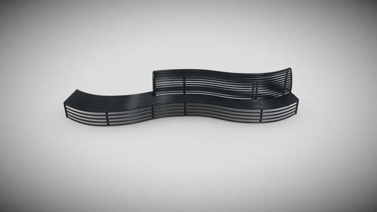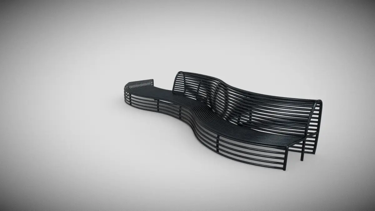 This uniquely designed bench is crafted from sleek metal rods, forming an elegant and flowing shape. The curved structure provides both aesthetic appeal and ergonomic comfort, making it a stylish addition to urban spaces, parks, or contemporary interiors. The open-frame design ensures durability while maintaining a lightweight and airy appearance