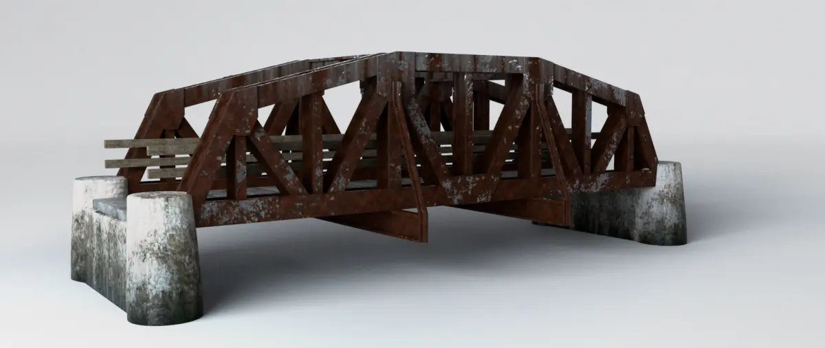 Metal Bridge I modeled in MayaIt can be duplicated to make it longer, perfect for trains, car accross river, or any use.