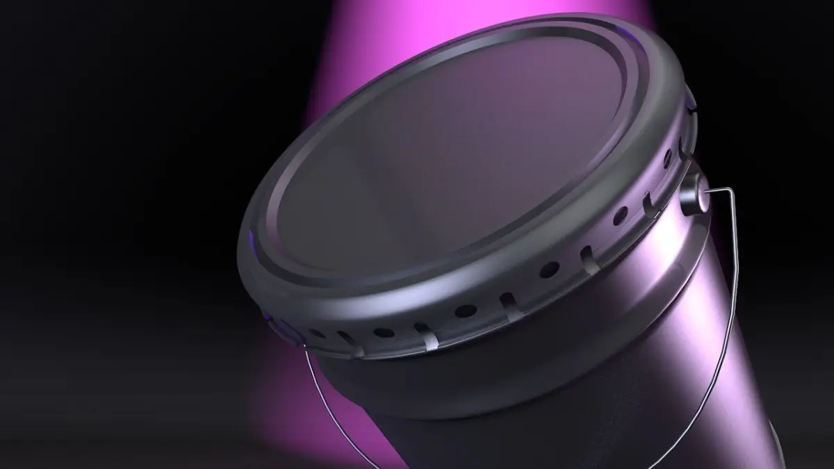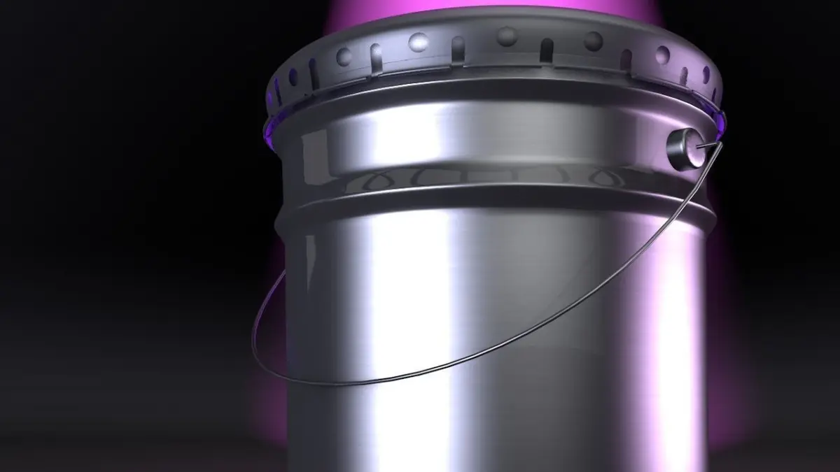 This is a 3d model of a aluminium bucket usually used to contain industrial paint and other high viscosity chemicals.