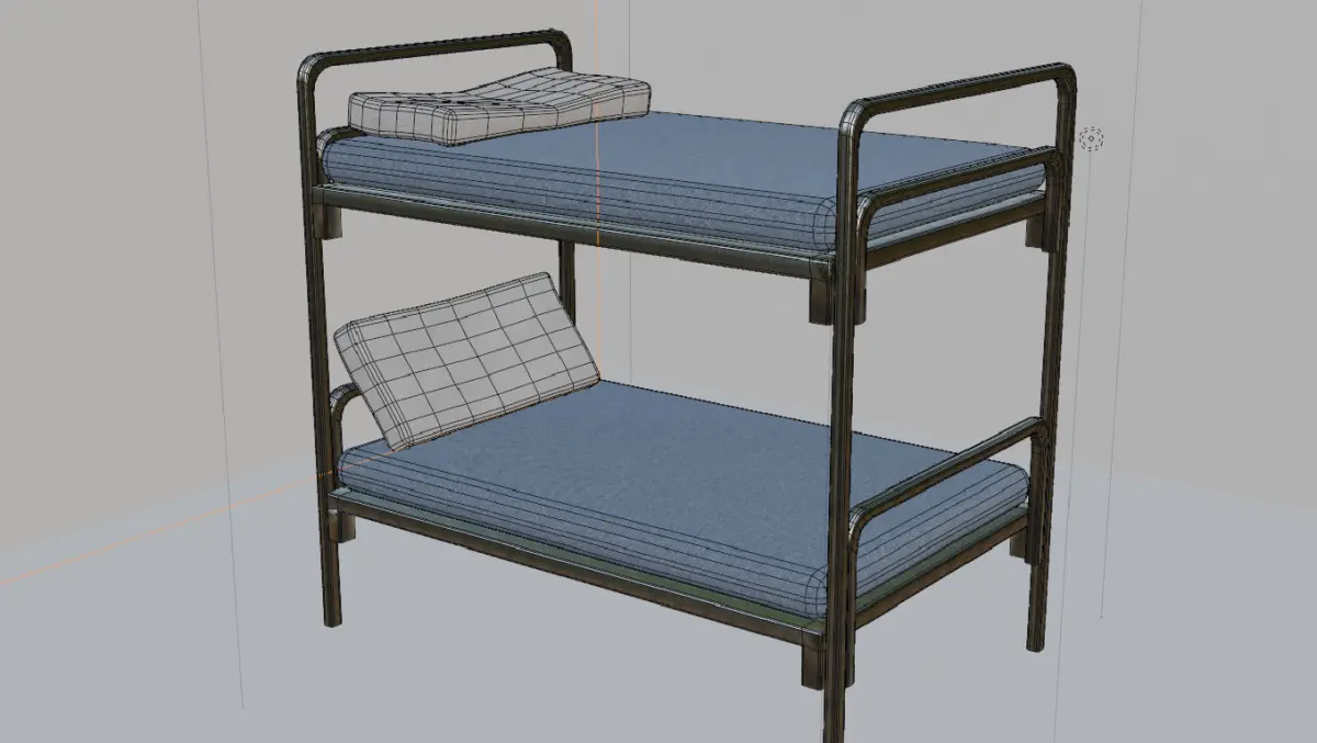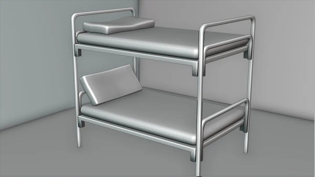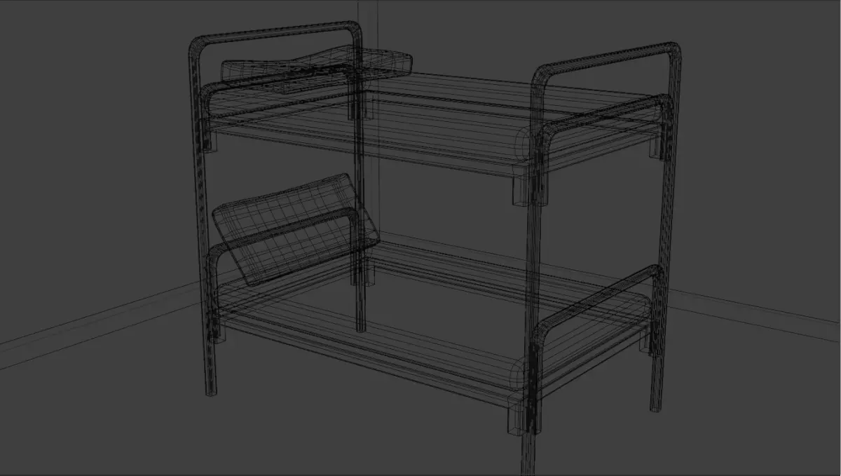 This is a realistic metal bunk bed designed for use in games, architectural visualization, and interior design projects. The model features a sturdy metal frame with a simple yet functional design, making it suitable for various environments such as military barracks, dormitories, prisons, or survival-themed games.