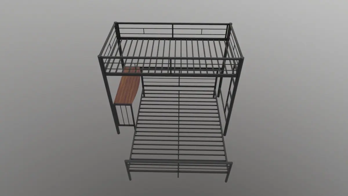 Metal Bunk Bed With Desk 3D Model