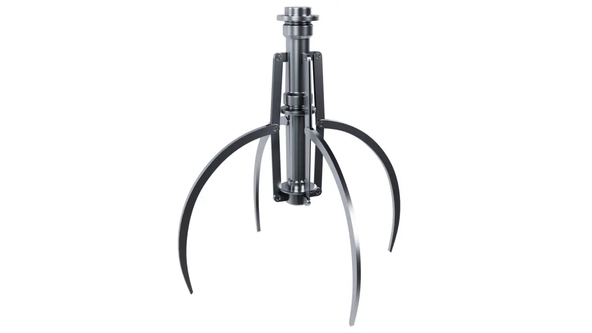 3D Model of Metal Claw 19 with RiggingThe animation for the claw is set up using a rig, allowing you to control it easily. You only need to move the highlighted element on the screen, and all other parts will move automatically in response to rigging.