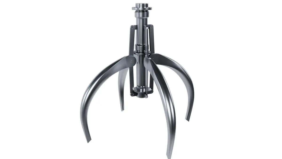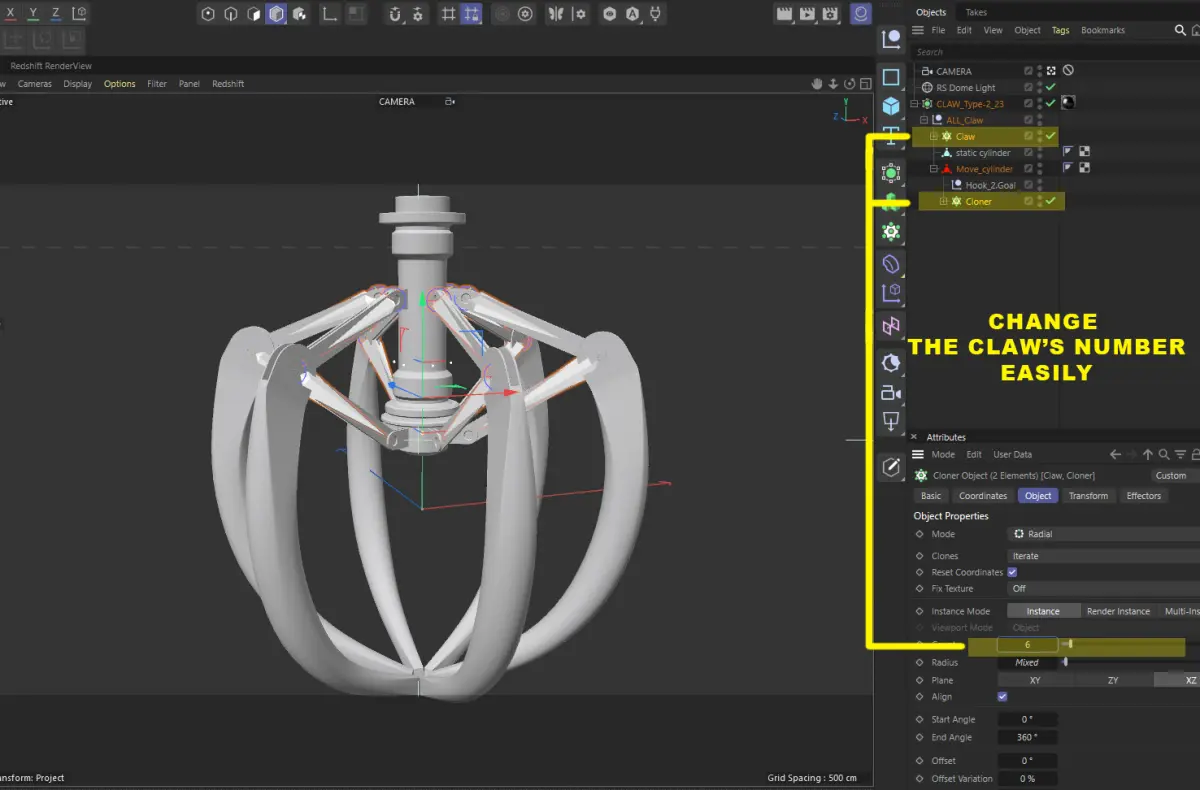 3D Model of Metal Claw 23 with RiggingThe animation for the claw is set up using a rig, allowing you to control it easily. You only need to move the highlighted element on the screen, and all other parts will move automatically in response to rigging.