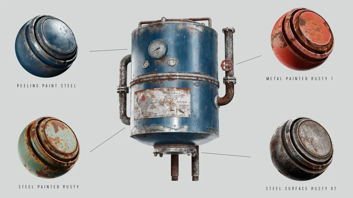 High-quality preview28 smart materials (spsm)Each layer has the correct nameNot heavyCustomizable100% made with substance painterAll materials checked with PBR validatorcompatible Substance 3D Painter, version 7.3.0 and highercustom shelf previewAll patterns created with shape manipulation using default texture and maps in substance painterFree Video tutorial: Making a worn rusty steel with peeling paint material in substance 3d painter - (Youtube)Category: Bronze corroded, Bronze statue, gold Corroded, Iron rusty, Metal grate, Metal grate rusty, Metal painted damage, Rust, Oxidized metal rusty, tempered metal, steel rusty, steel painted rusty, peeling paint metal,