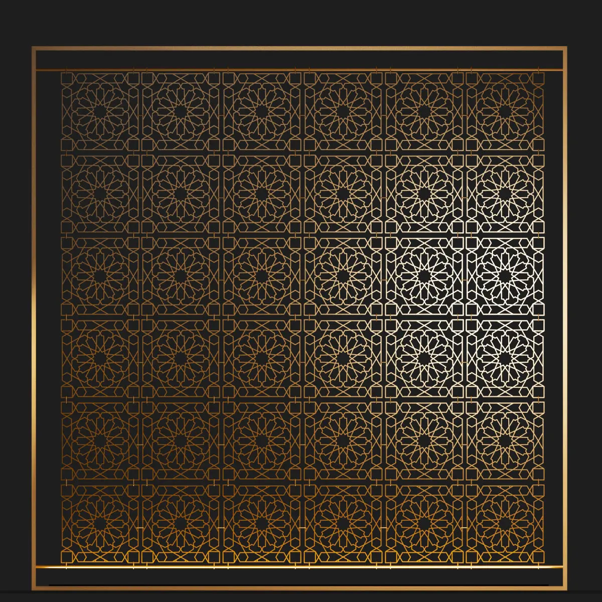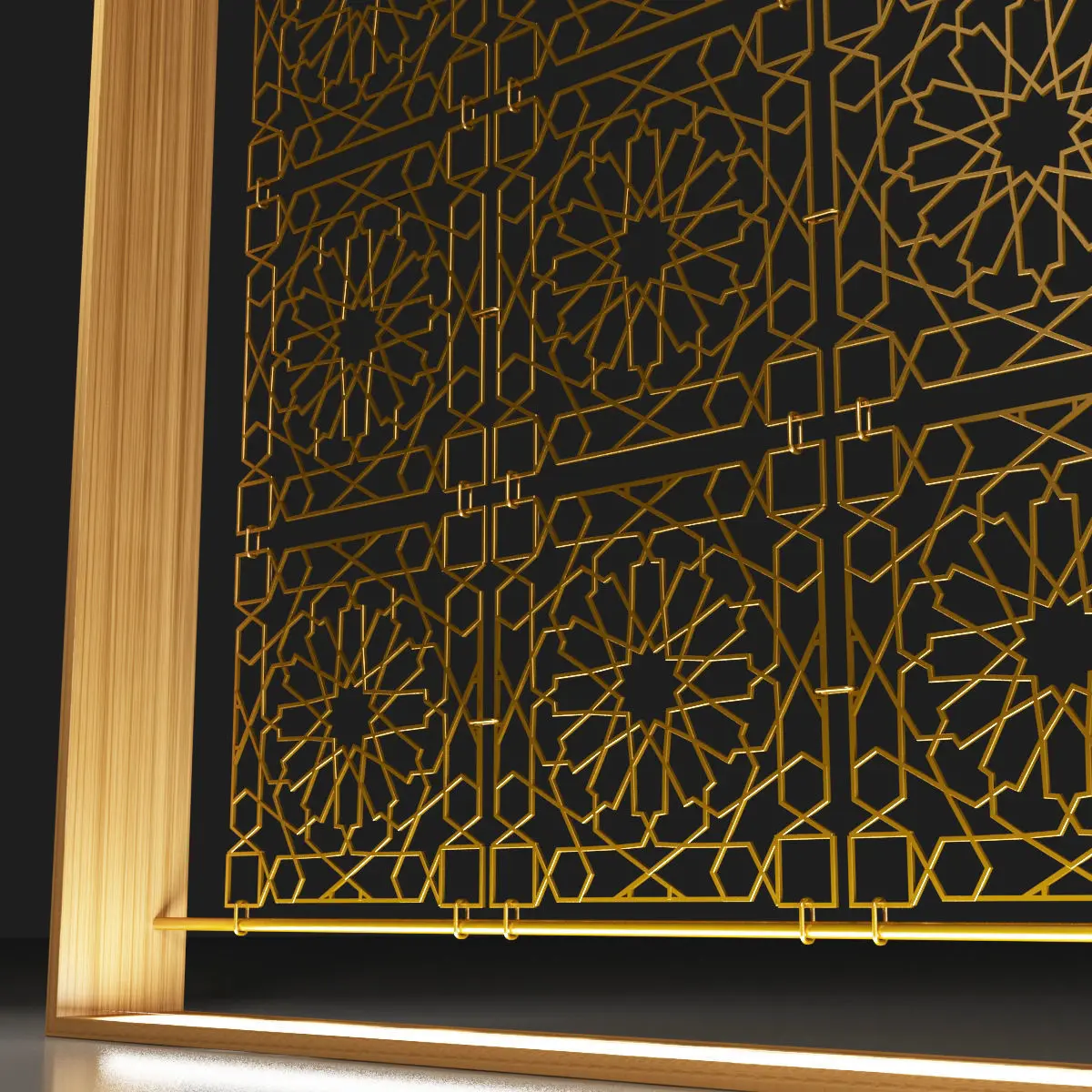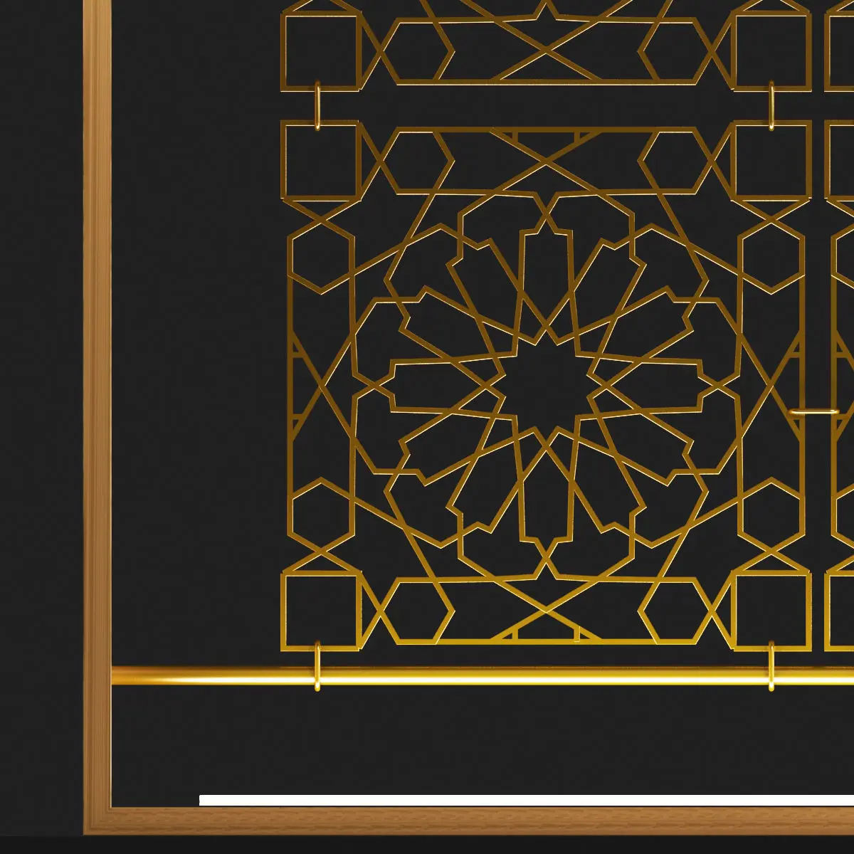 Brass Metal Decorative Orient Separator,The pattern is preserved as a line. The line thickness and type can be changed from the Rendering settings in the Modifier Panel of the line.Available thickness is 4x4 mm.Pattern blocks copied as instances.The bottom row is also copied from the instance.Textures can be changed.It can be made in different colors and textures.UVW map can be interfered with.the drawing steps of the model are protected. Changes can be made if requested.It is instructive.