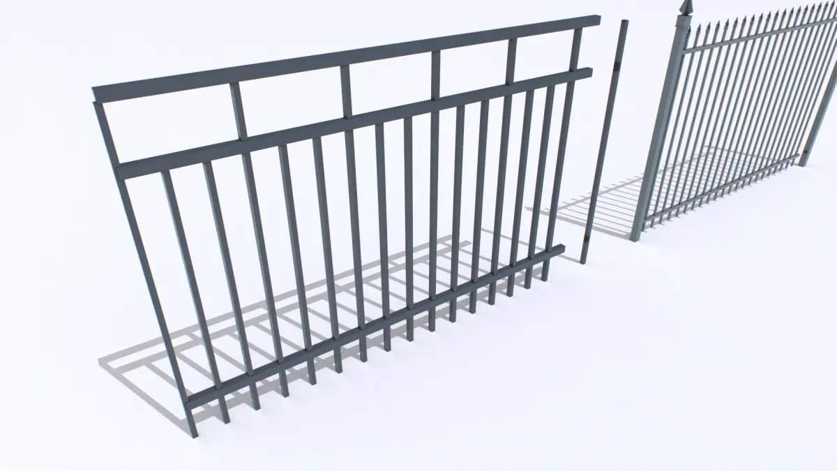Pack of 2 metal fences. Based in real ones. Realistic scale. 4 meshes, 2 fences and 2 endings.