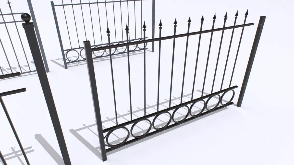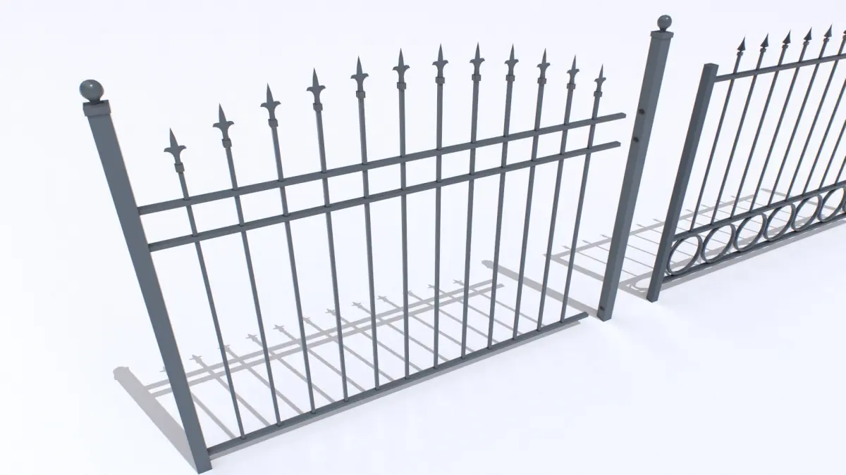 Pack of 2 metal fences. Based in real ones. Realistic scale. 4 meshes, 2 fences and 2 endings.
