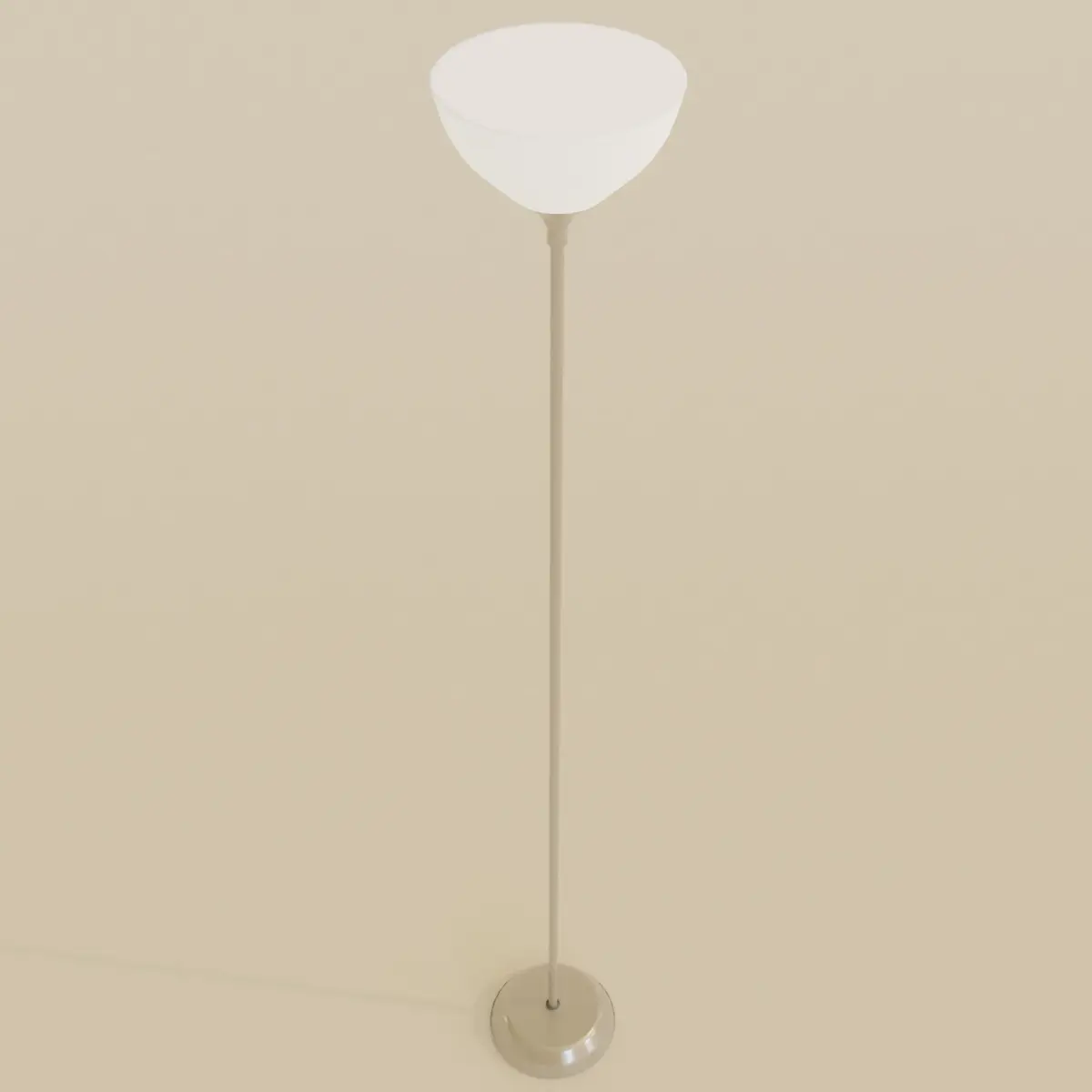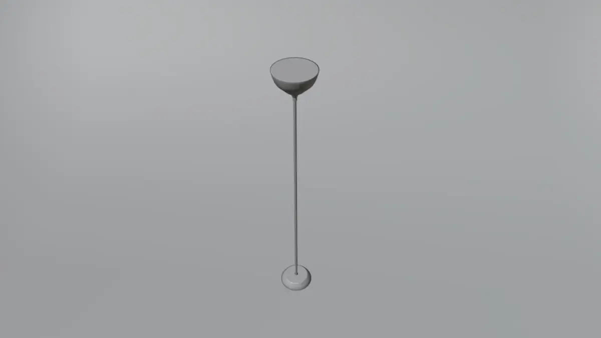 Metal Floor Lamp 3D ModelThis is a 3D model of a floor lamp. It has a grey metal shaft and white acrylic shade. It provides/emits a soft white light