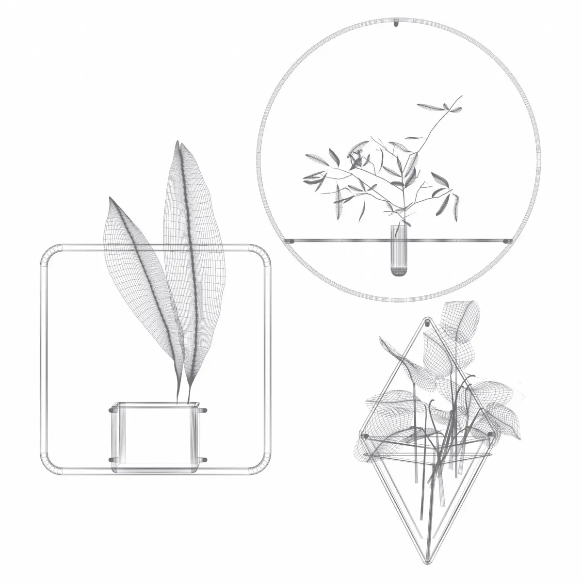 3dsmax 2015 + corona&vray.obj&.mtl filesIndoor metal Frame Plant Pot Set for WallcollectionRectangle Frame Pot with Cast Iron Leaf/AspidistraRound Frame Pot with small leaf branchTriangle Frame Pot with calatheas plant tree