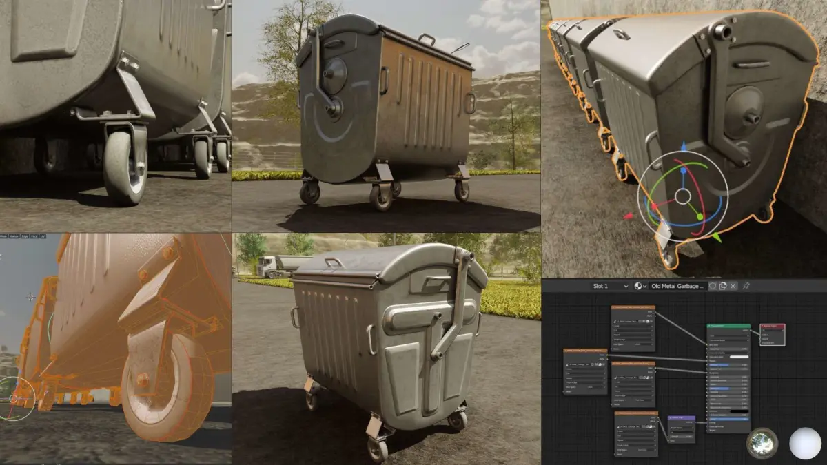 Here is the remastered version of the low-poly old metal garbage dumpster for a use in Blender-3.2.