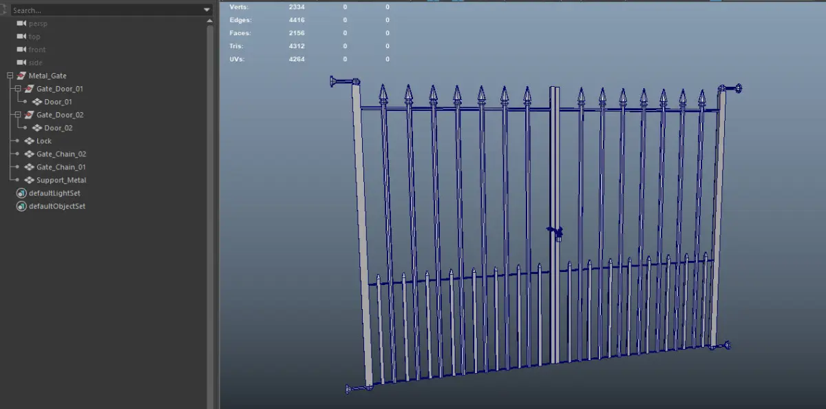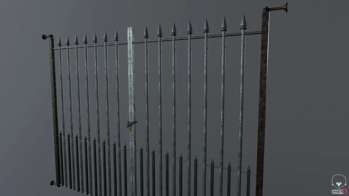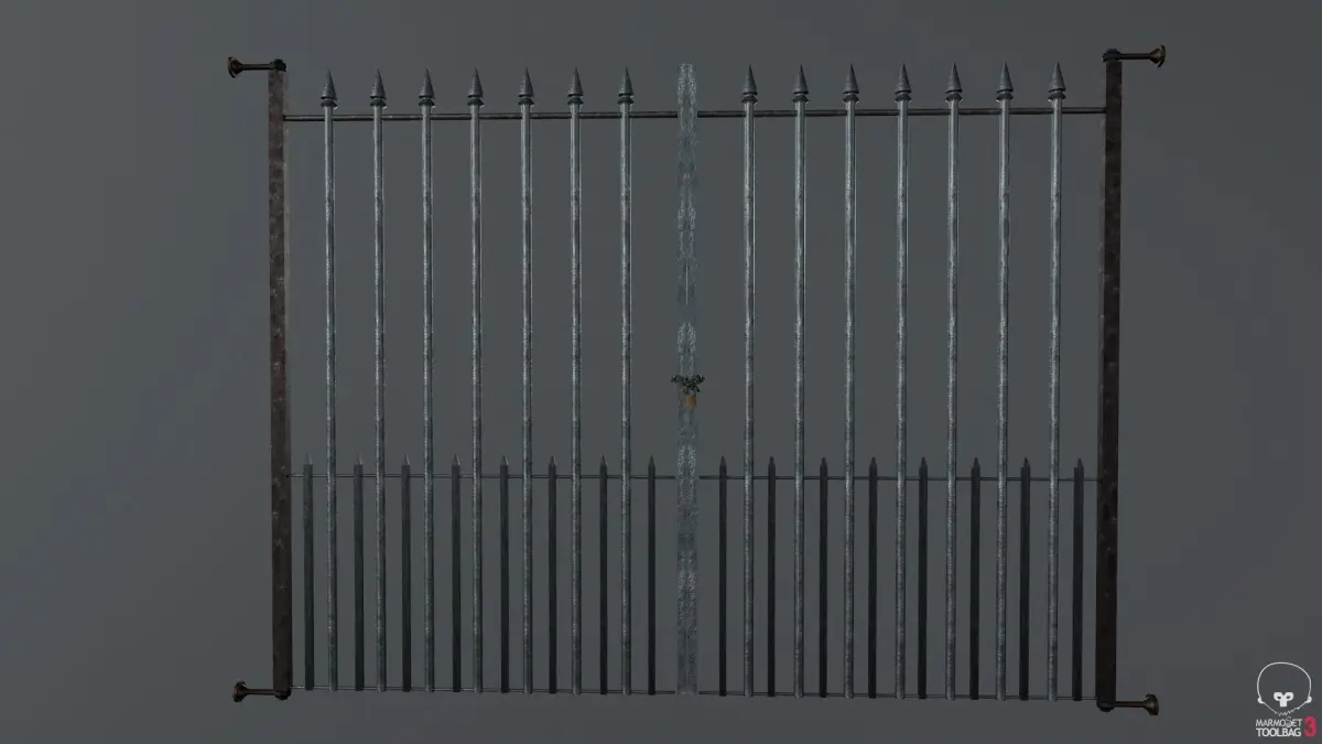 A Metal Gate made for a horror game ready for a game engine it has 2334 verts 2156 polys and 4312 tris and the textures are 2048 x 2048 includes diffuse and normal maps